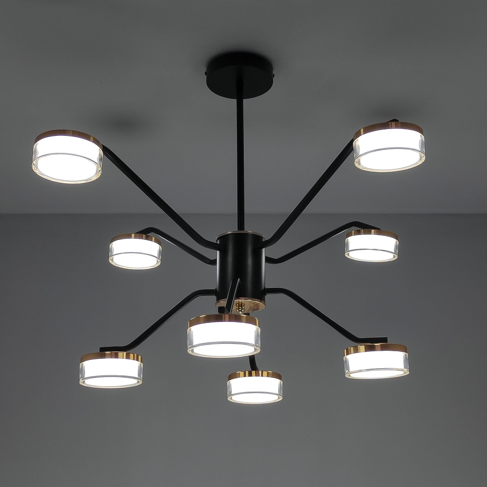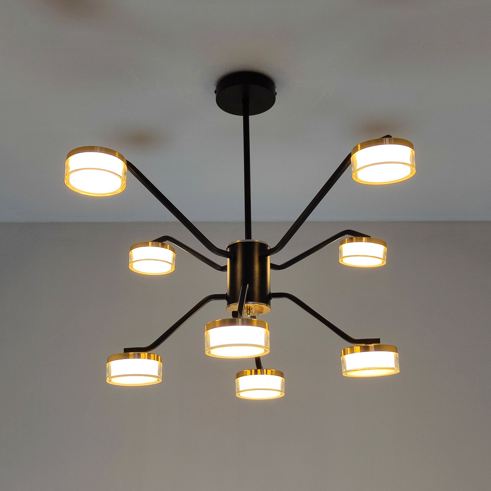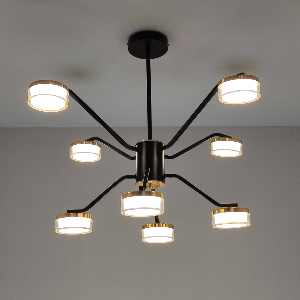 Люстра светодиодная 8 плафонов 75*50см 72Вт 18000LM 30м2 3 цвета пульт черный Baizheng