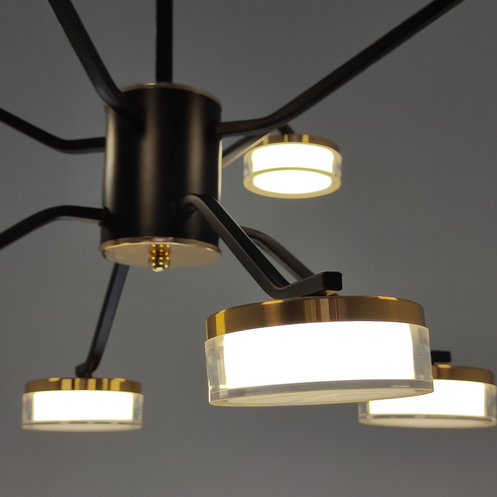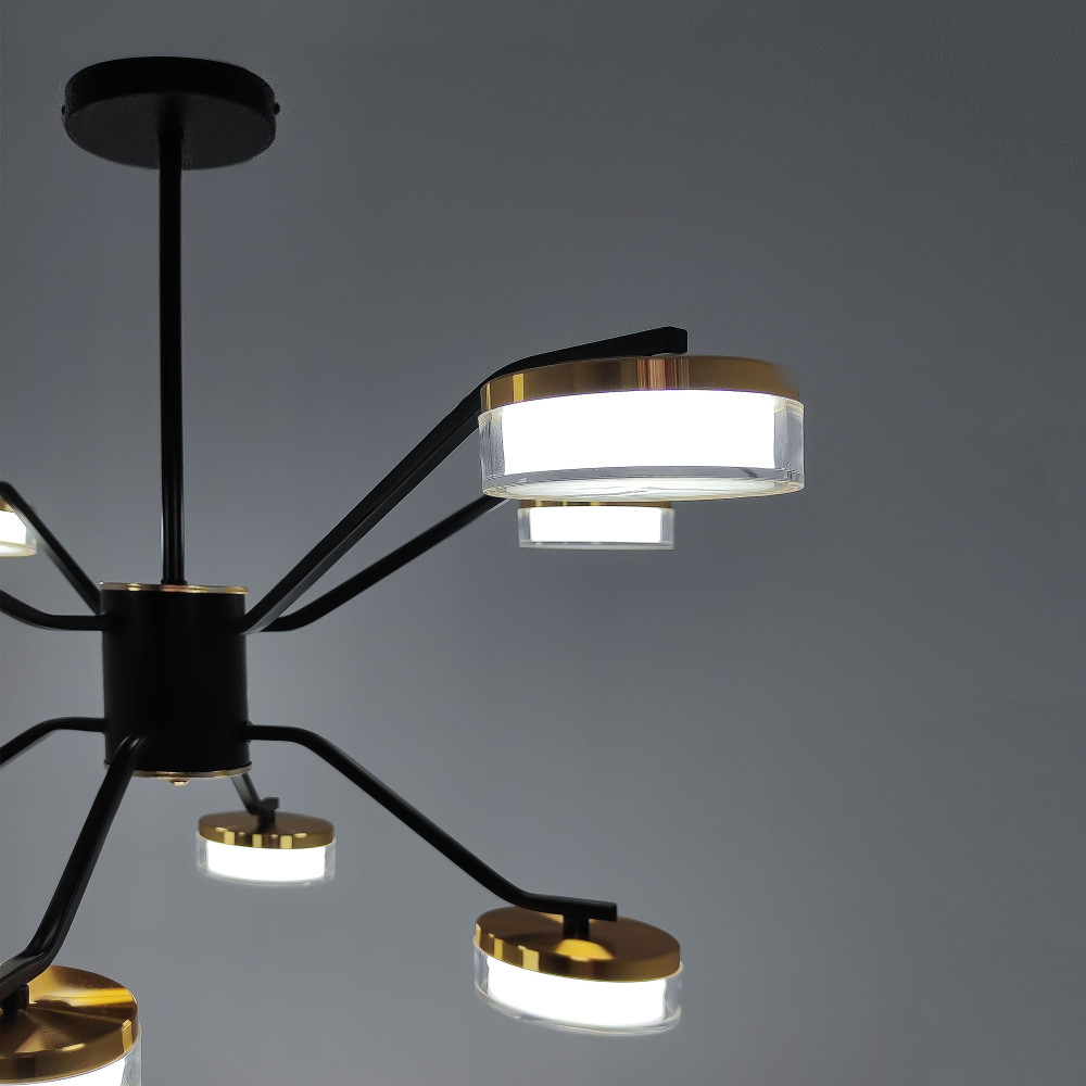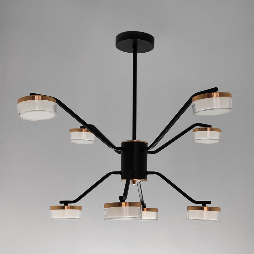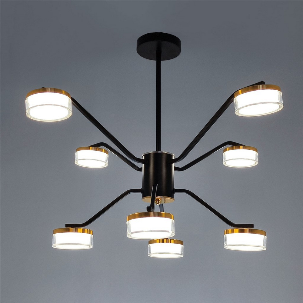 Люстра светодиодная 8 плафонов 75*50см 72Вт 18000LM 30м2 3 цвета пульт черный Baizheng