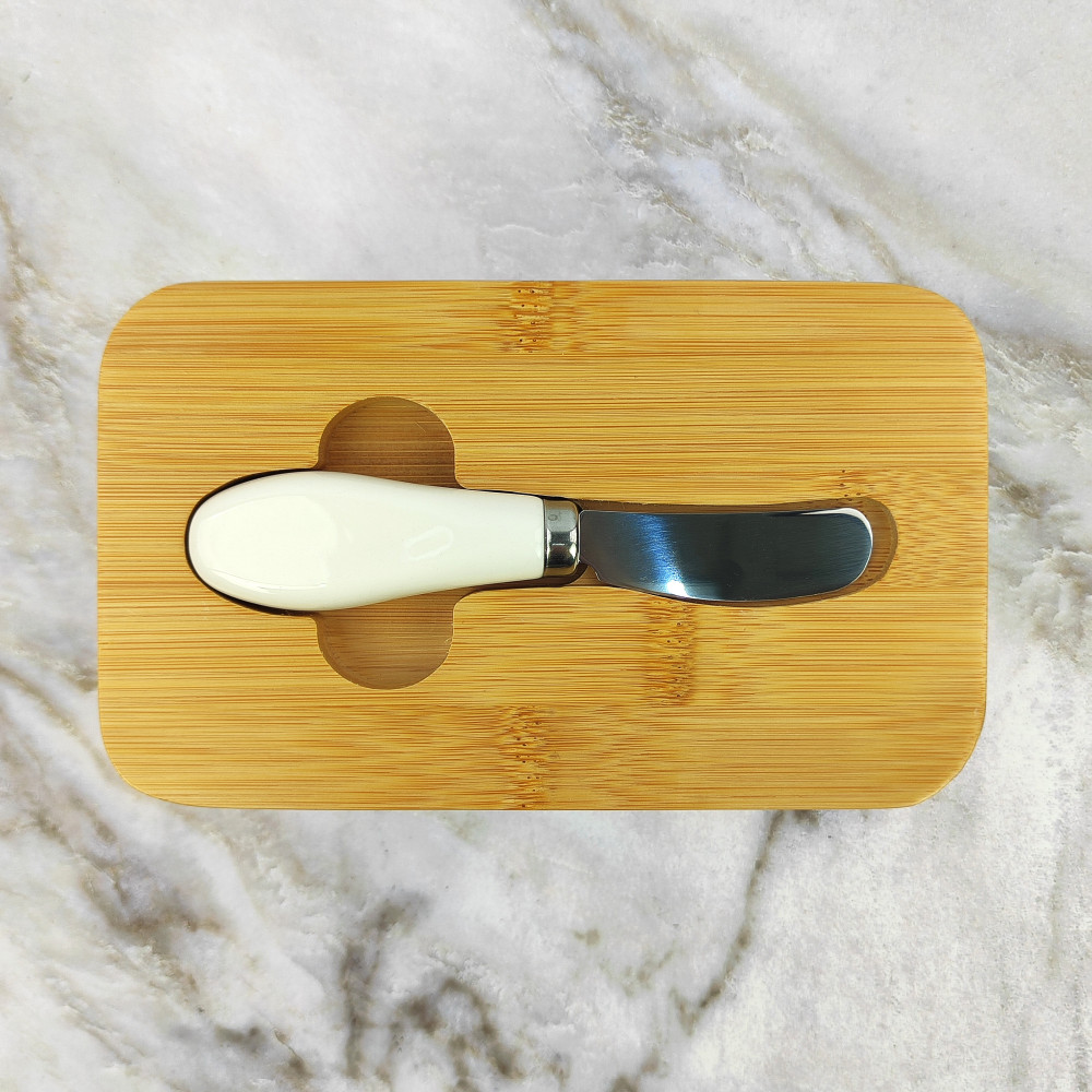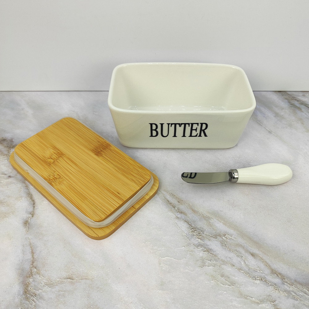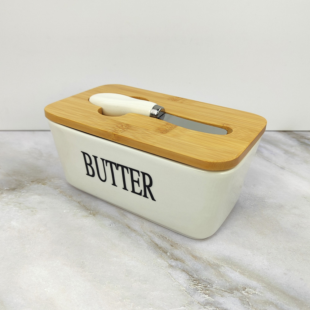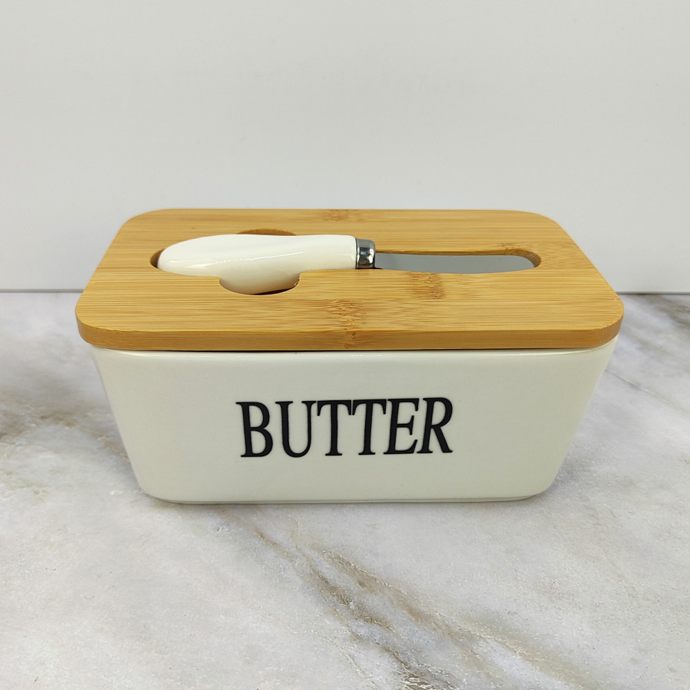 Масленка фарфоровая 17*9,5*8 см с ножом дерев крышка под упак Коралл