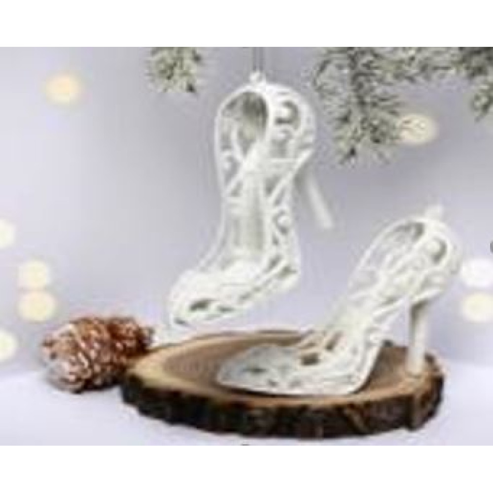 Набор елочных украшений 2 шт 10 см пластик белый Туфли Серпантин