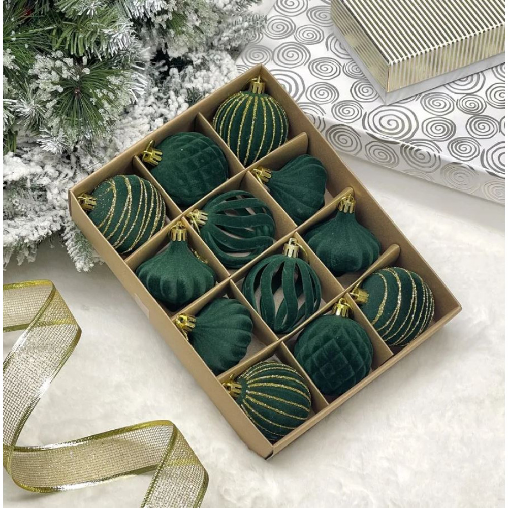 Набор елочных игрушек 12 шт 6 см изумруд Восточная ночь Velour Серпантин