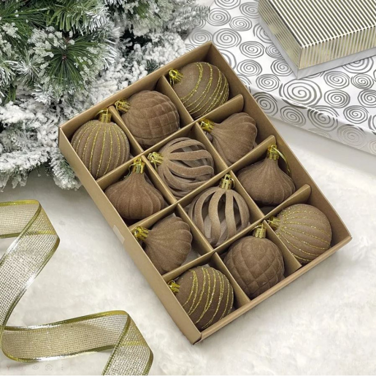Набор елочных игрушек 12 шт 6 см кофейный Восточная ночь Velour Серпантин