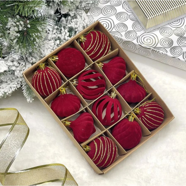 Набор елочных игрушек 12 шт 6 см рубин Восточная ночь Velour Серпантин