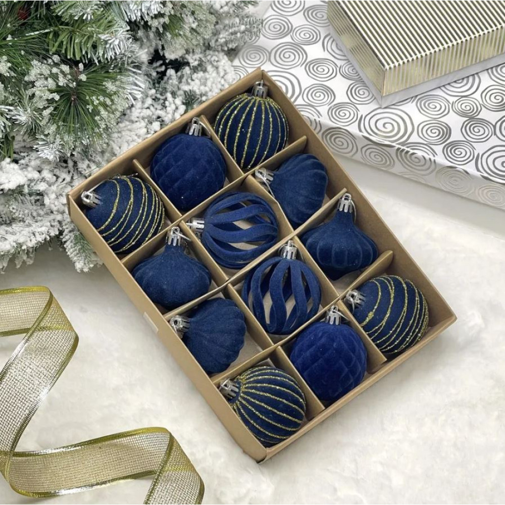 Набор елочных игрушек 12 шт 6 см сапфир Восточная ночь Velour Серпантин
