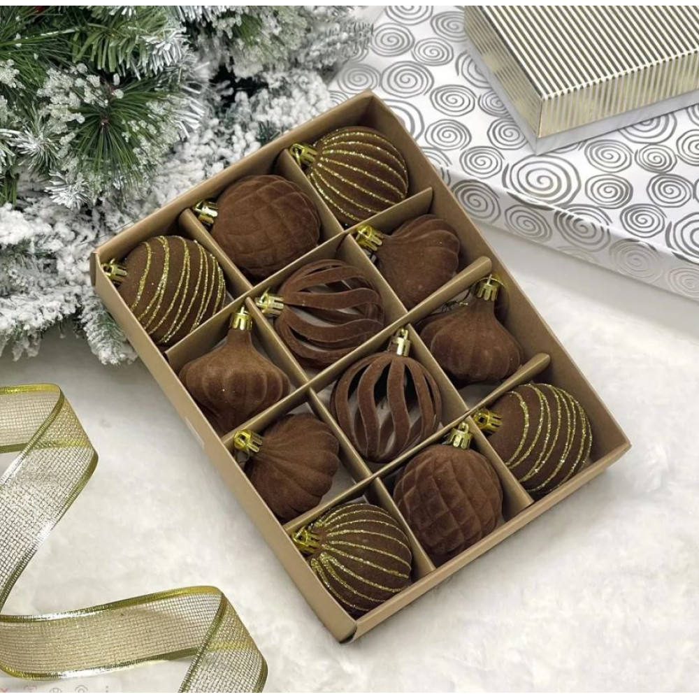Набор елочных игрушек 12 шт 6 см шоколад Восточная ночь Velour Серпантин
