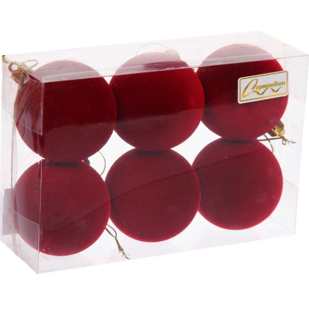 Набор елочных игрушек 6 шт 6 см рубин Нежный бархат Velour Серпантин