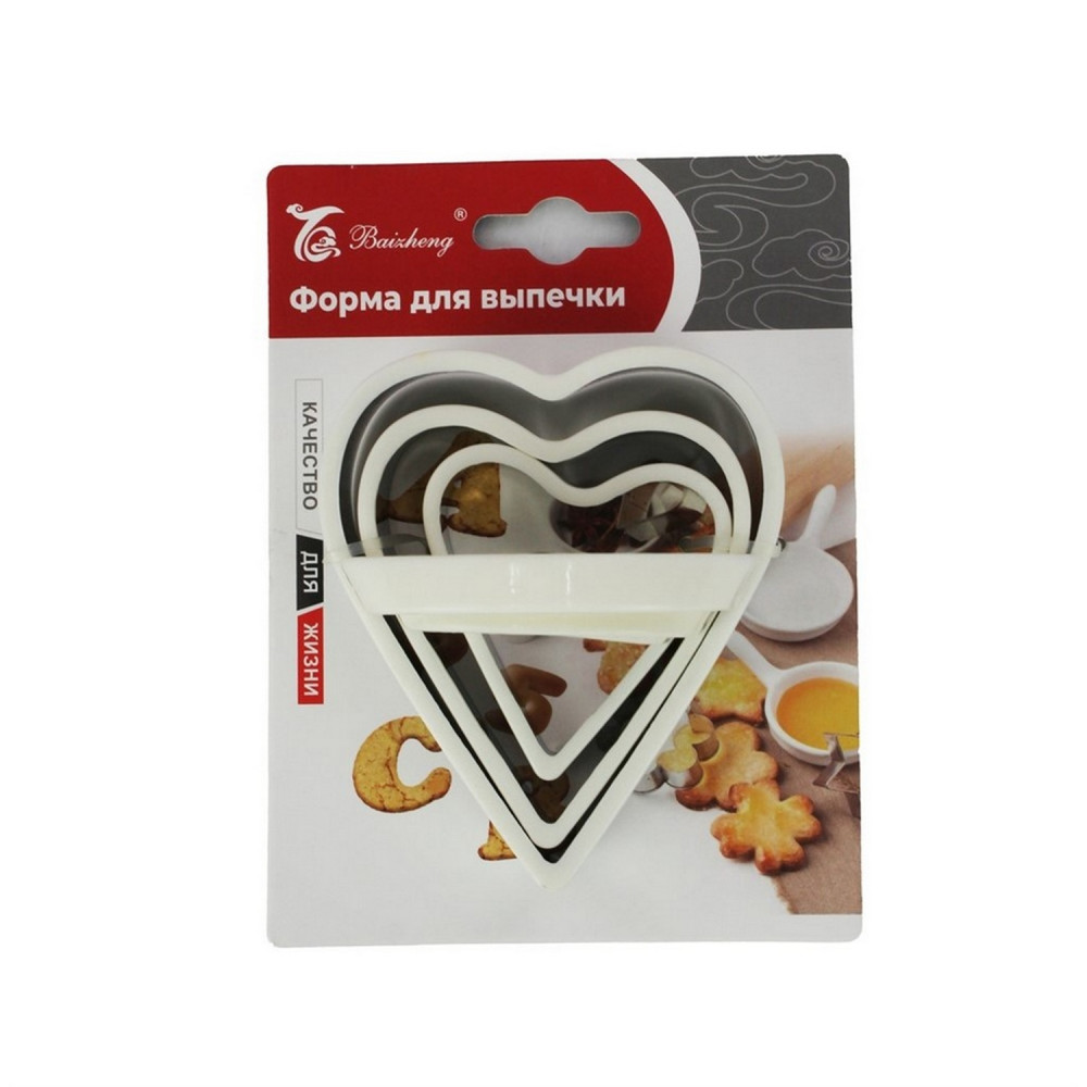 Набор форм нержавеющая сталь 3 предметов 8х9х6 см для печенья пласт ручка Сердце Baizheng