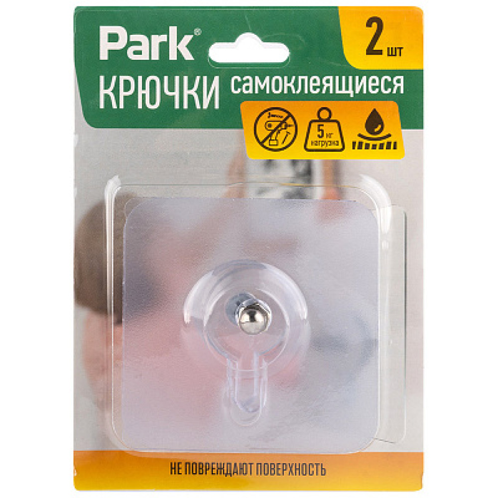Набор пластиковых крючков 2 шт самоклеящ 6*6см круглые винтовые для полок/картин до 5кг Park