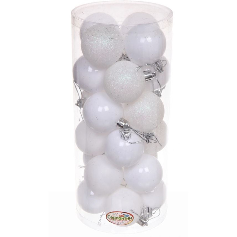 Набор пластиковых шаров d-5 см 24 шт белый Микс фактур Серпантин