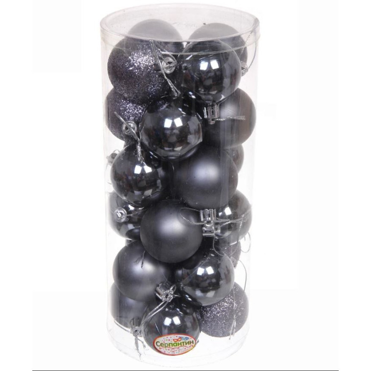 Набор пластиковых шаров d-5 см 24 шт графит Микс фактур Серпантин