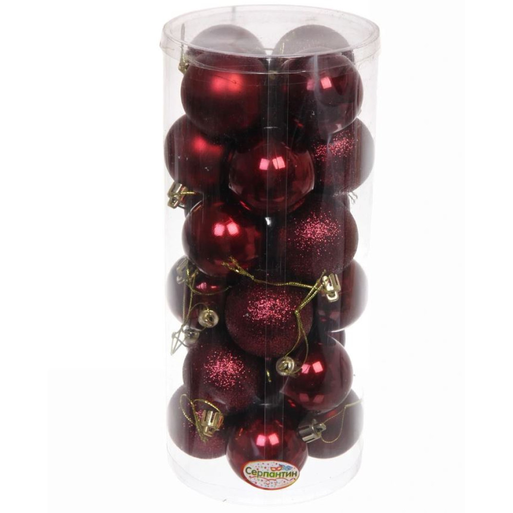 Набор пластиковых шаров d-5 см 24 шт темный рубин Микс фактур Серпантин