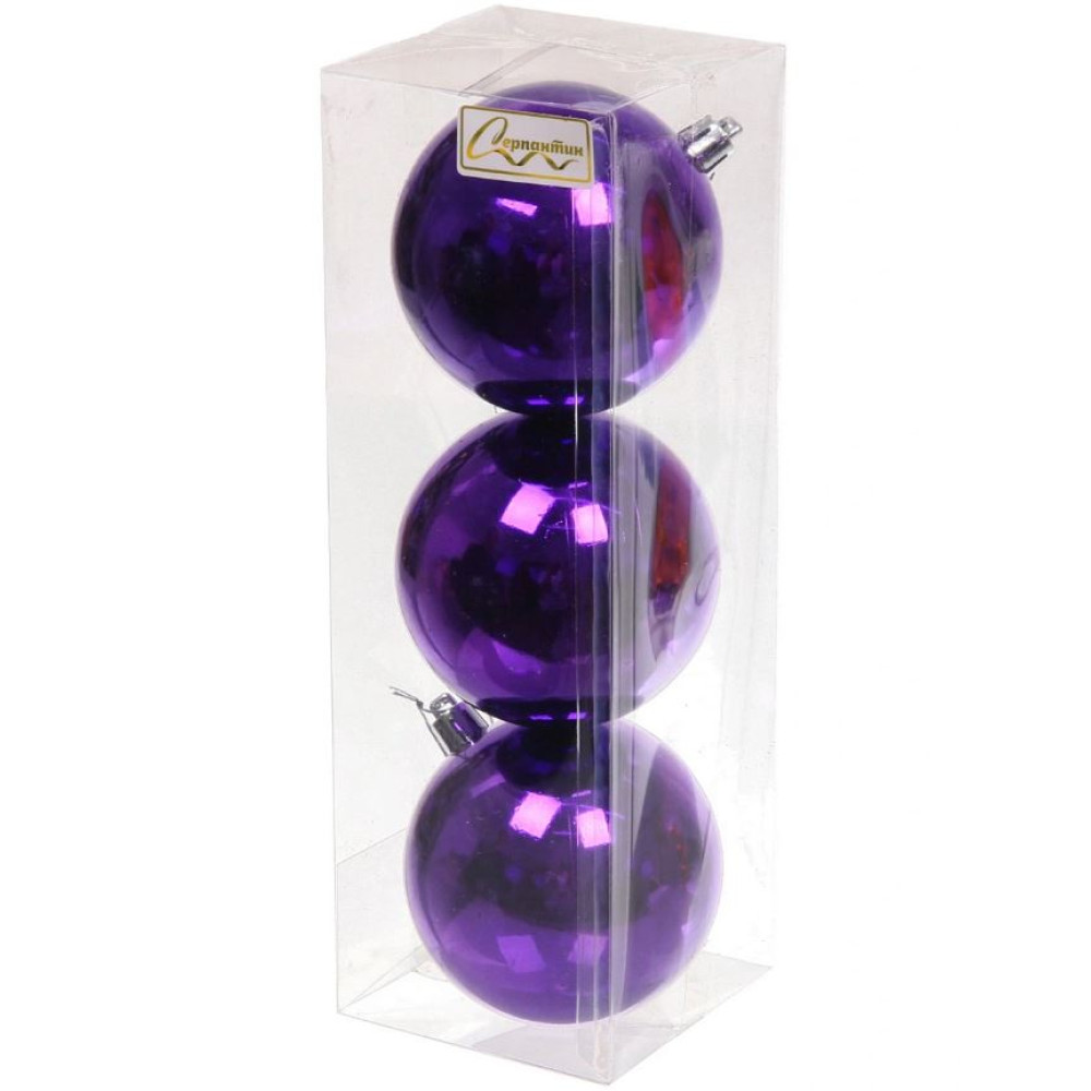 Набор пластиковых шаров d-8 см 3 шт фиолетовый Глянец Серпантин