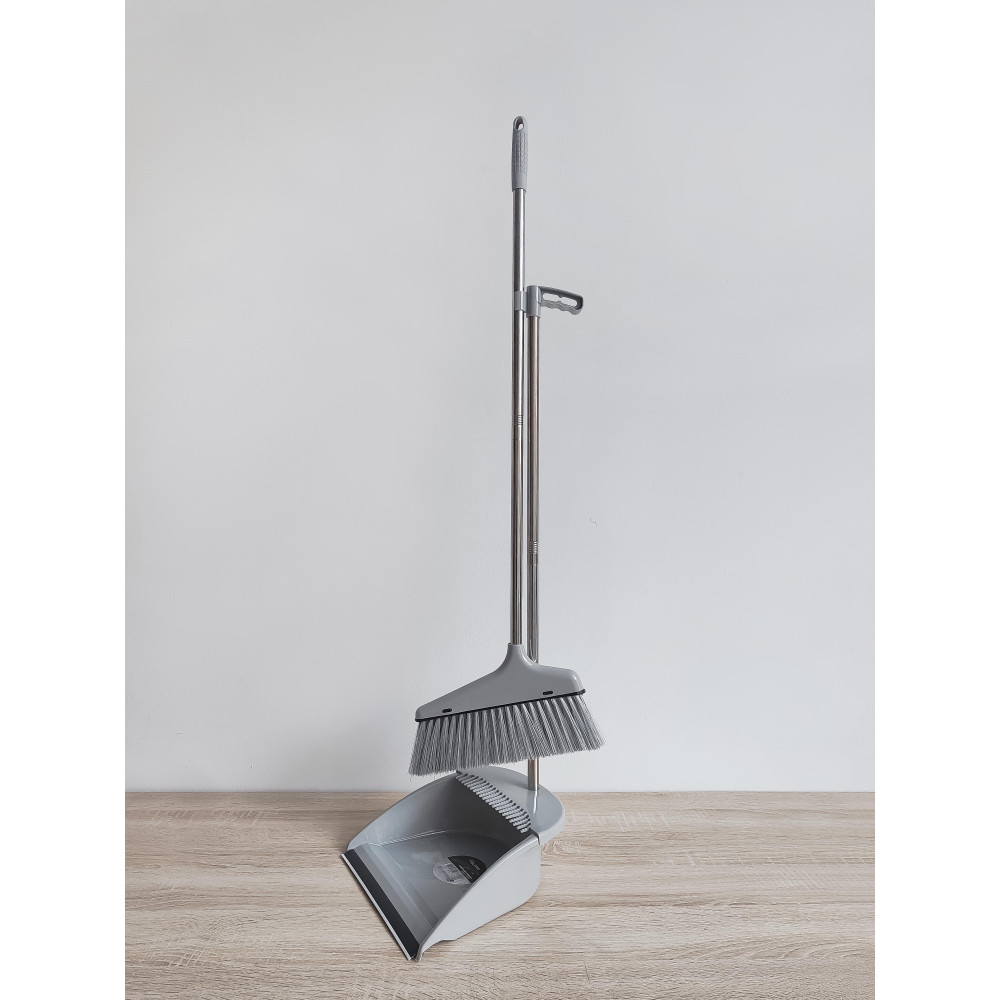 Набор пластиковый для уборки веник + совок 84*28/25*25,8*75 см разборная ручка серый Baizheng