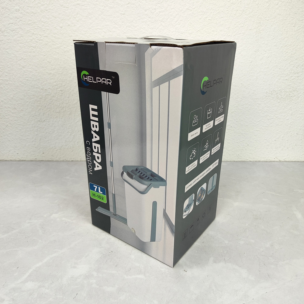 Набор ведро пластиковое с отжимом 12 л + швабра металл вращение 360° под упак Baizheng