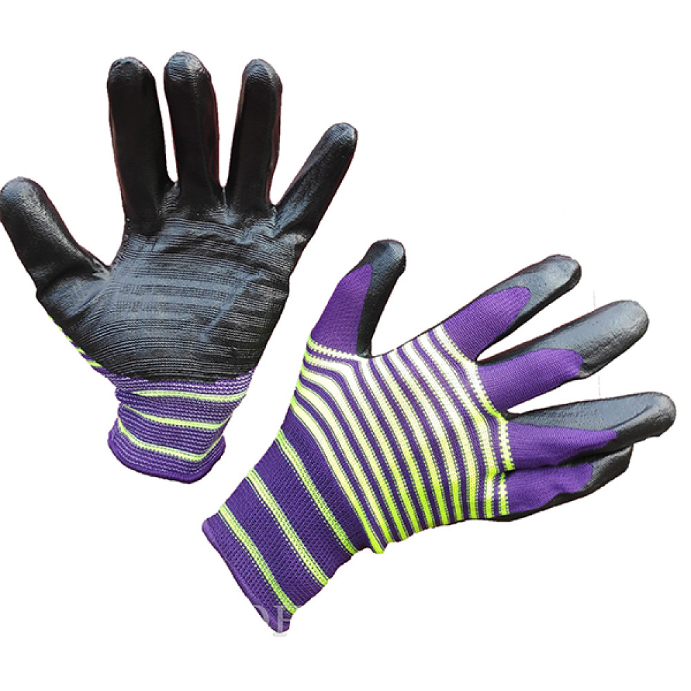 Перчатки нейлоновые облитые латекс рифленные фиолетовые