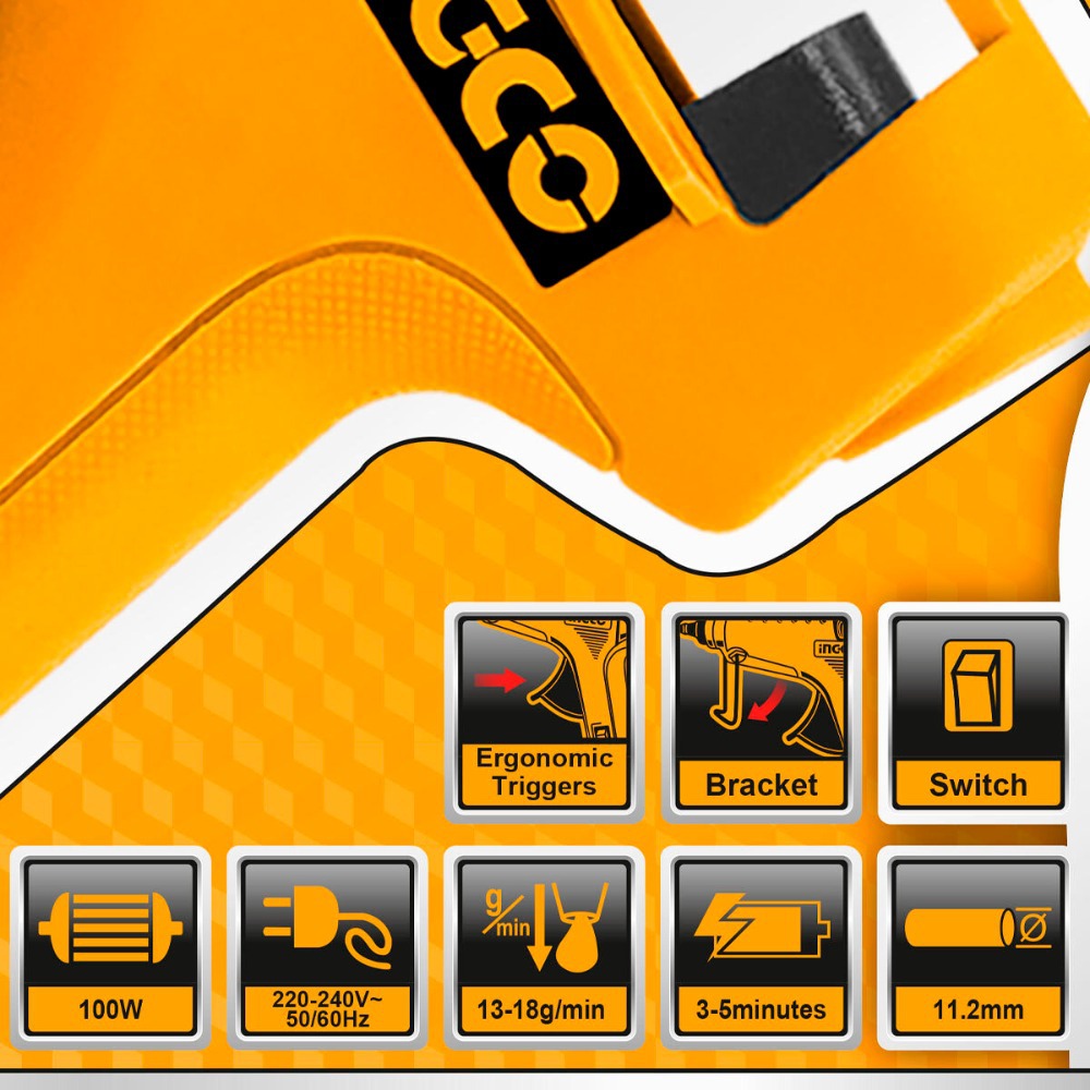 Пистолет клеевой 100 Вт 11мм INGCO GG6008