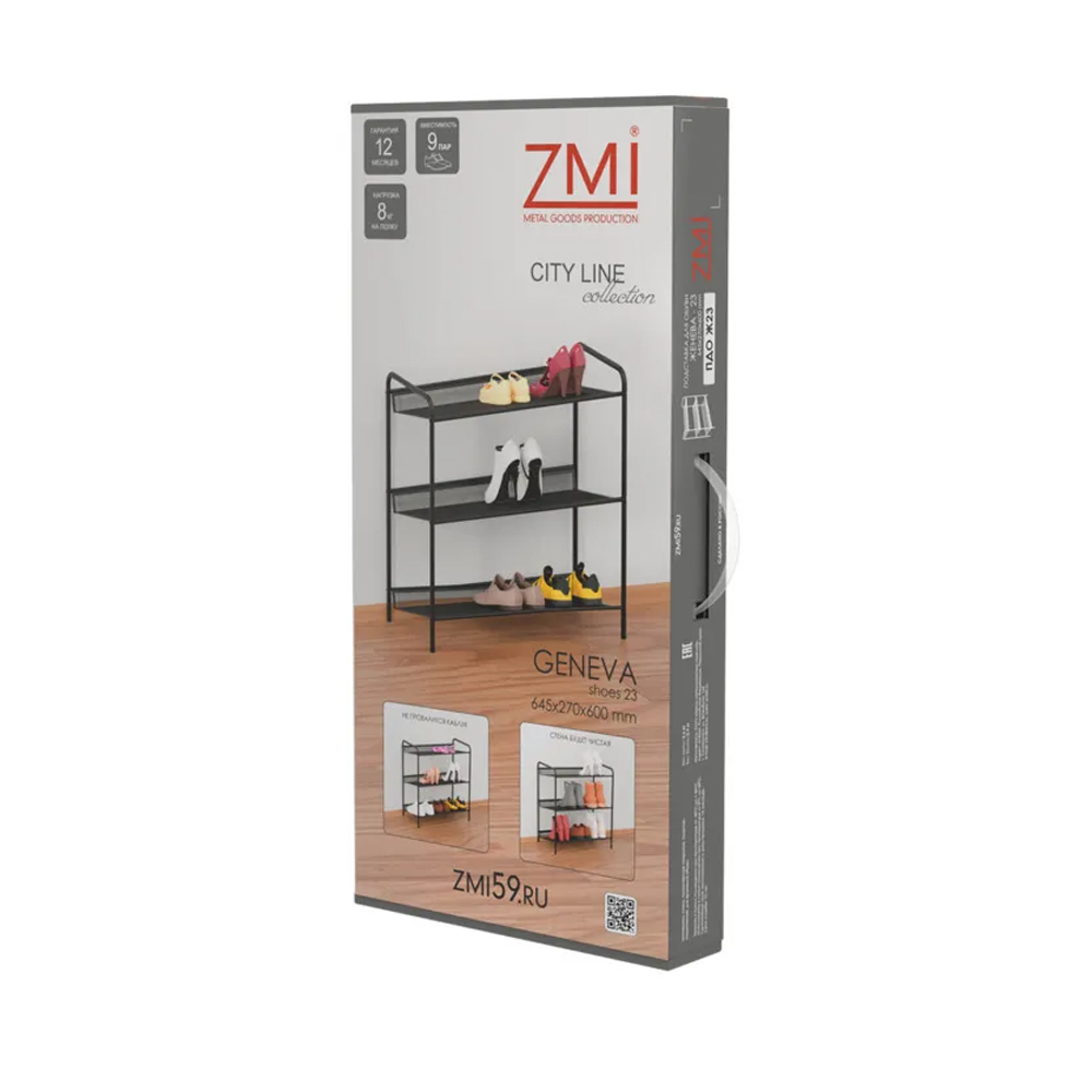 Подставка металлическая для обуви 3-х ярусная 45*27*60 см белый Женева 13 ЗМИ