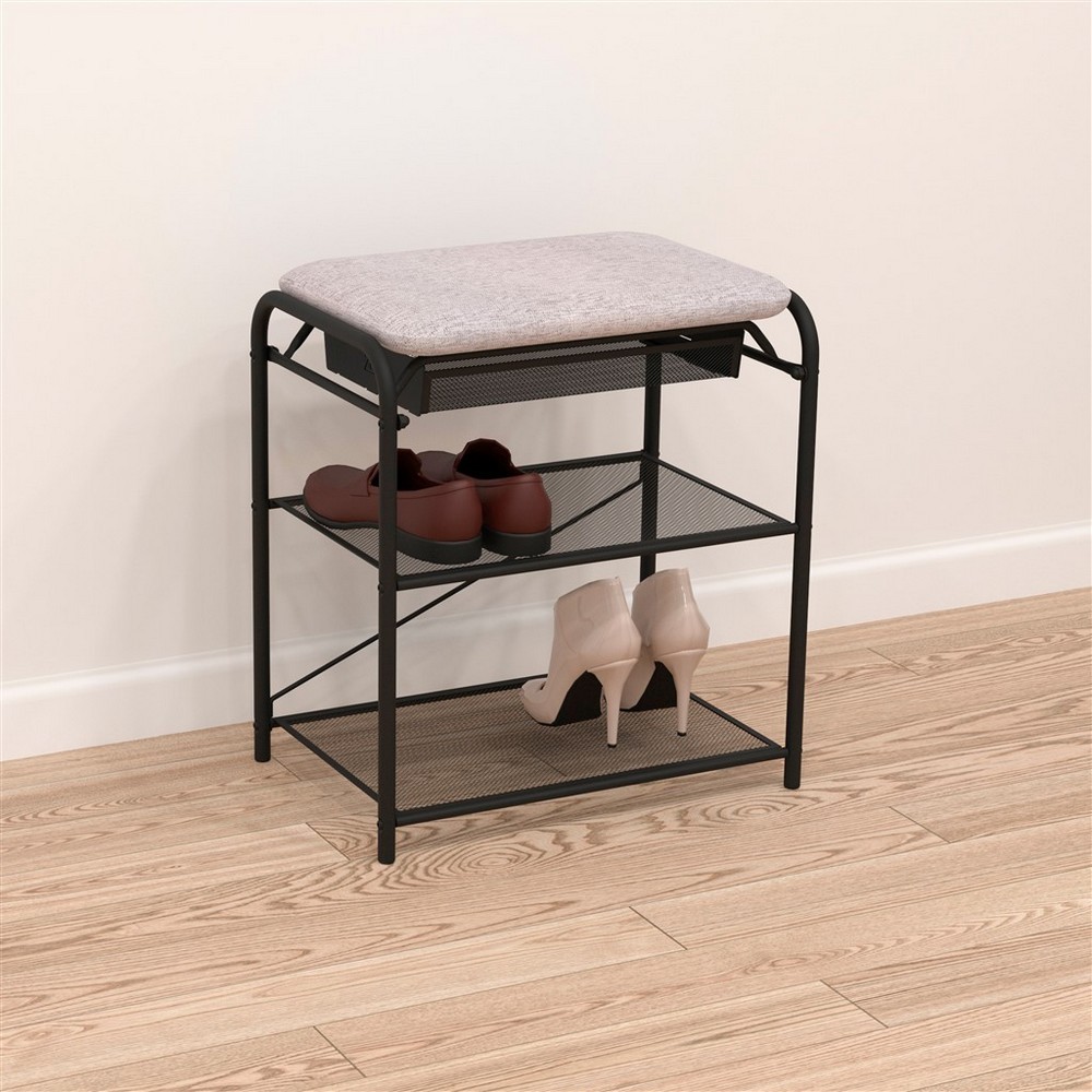 Подставка металлическая для обуви 3-х ярусная 45*30*50 см сиденье ящик черный Гранада 13В ЗМИ