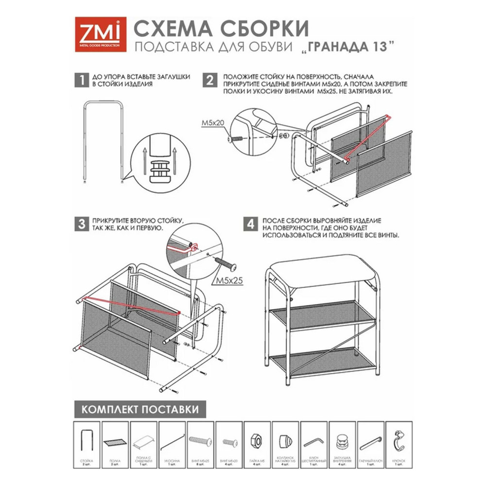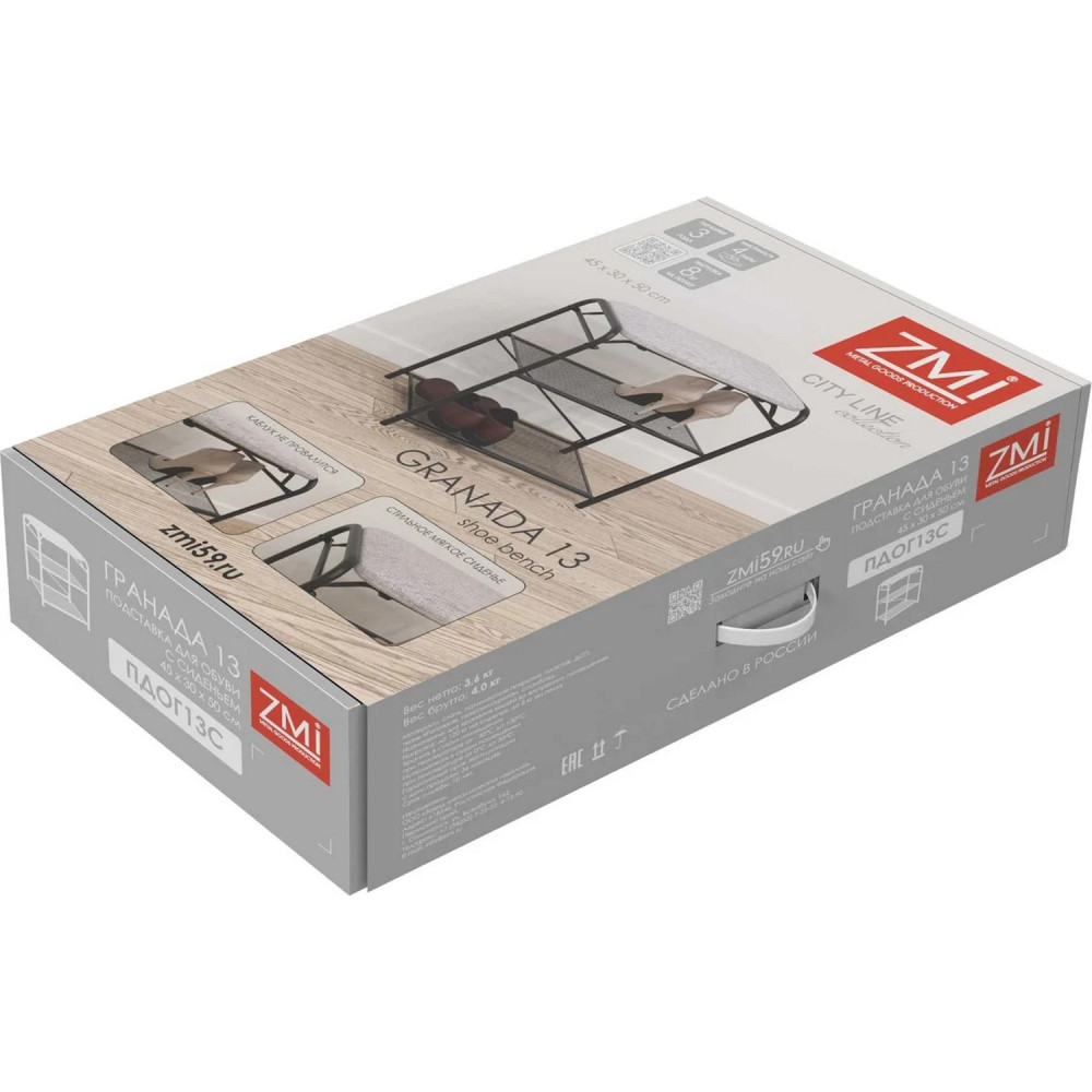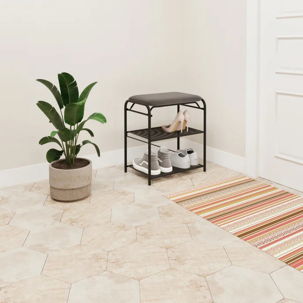 Подставка металлическая для обуви 3-х ярусная 45х30х50 см сиденье ящик черный Гранада 13В ЗМИ