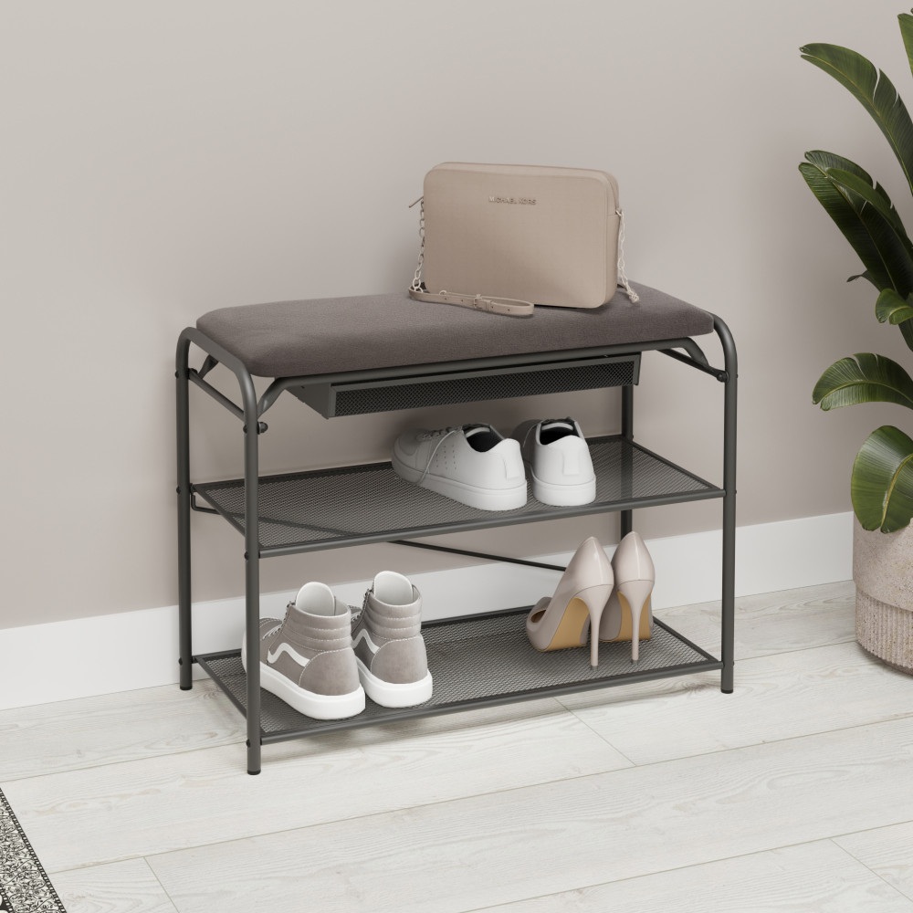 Подставка металлическая для обуви 3-х ярусная 65х30х50 сиденье нубук ящик черный Гранада 23В ЗМИ