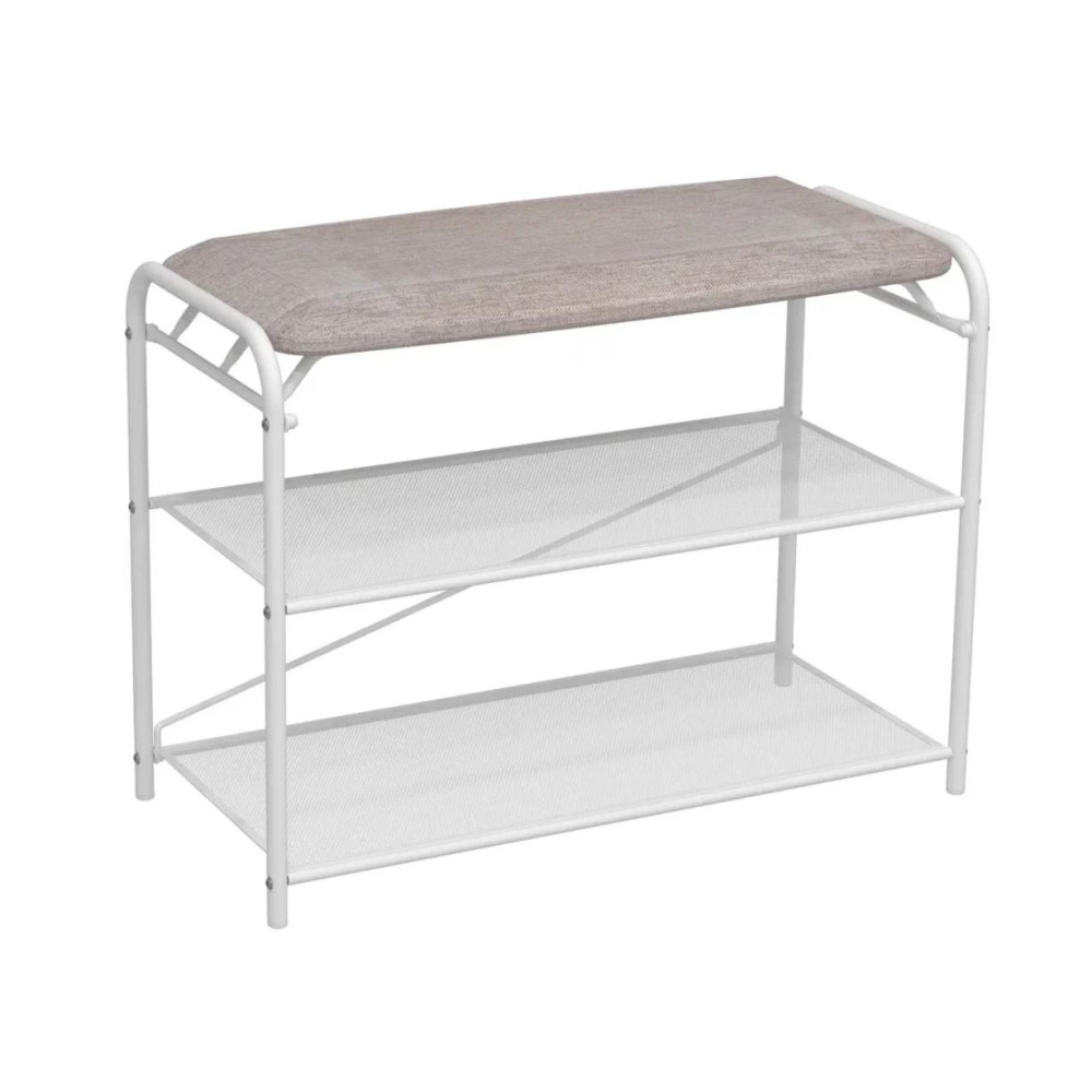 Подставка металлическая для обуви 3-х ярусная 65*30*50 сиденье нубук белый Гранада 23_НБК ЗМИ