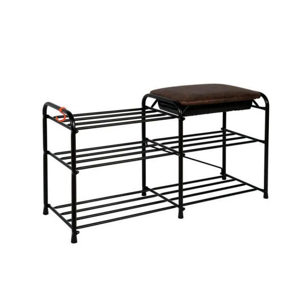 Подставка металлическая для обуви 3-х ярусная 89х30х48 см сиденье с ящиком черный 33ЗМИ