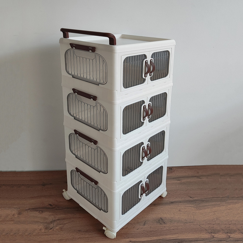Шкаф пластиковый 4 секции 475*300*1190 мм на колесах прозрачно белый Baizheng