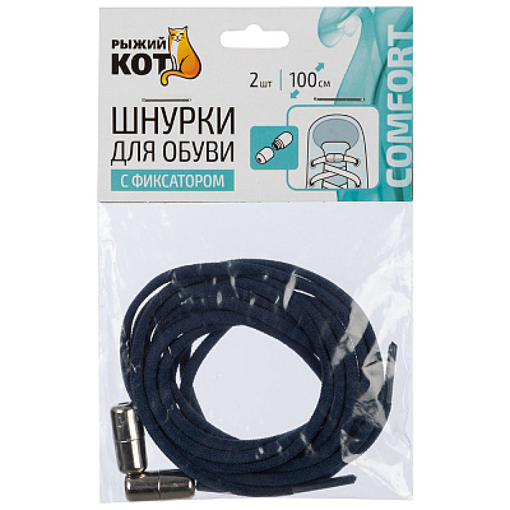 Шнурки для обуви 2 пары 100 см с металл застежкой-фиксатором темно-синий