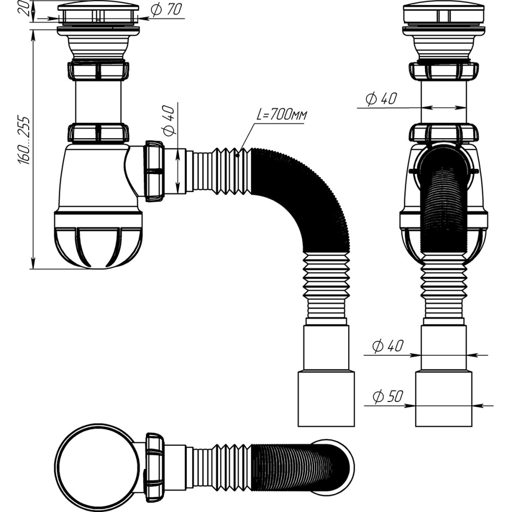 Сифон для мойки 1 1/2х40 с декор. зерк. крышкой на решётку, с г/т 40х40/50 Aquant (30) B0116-30-MR