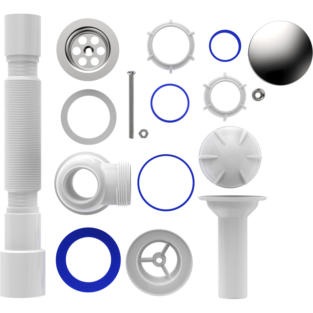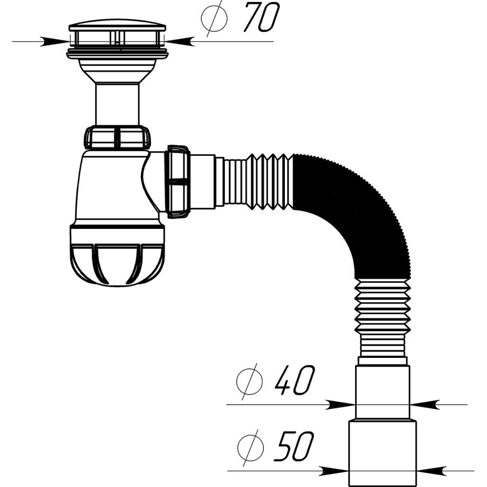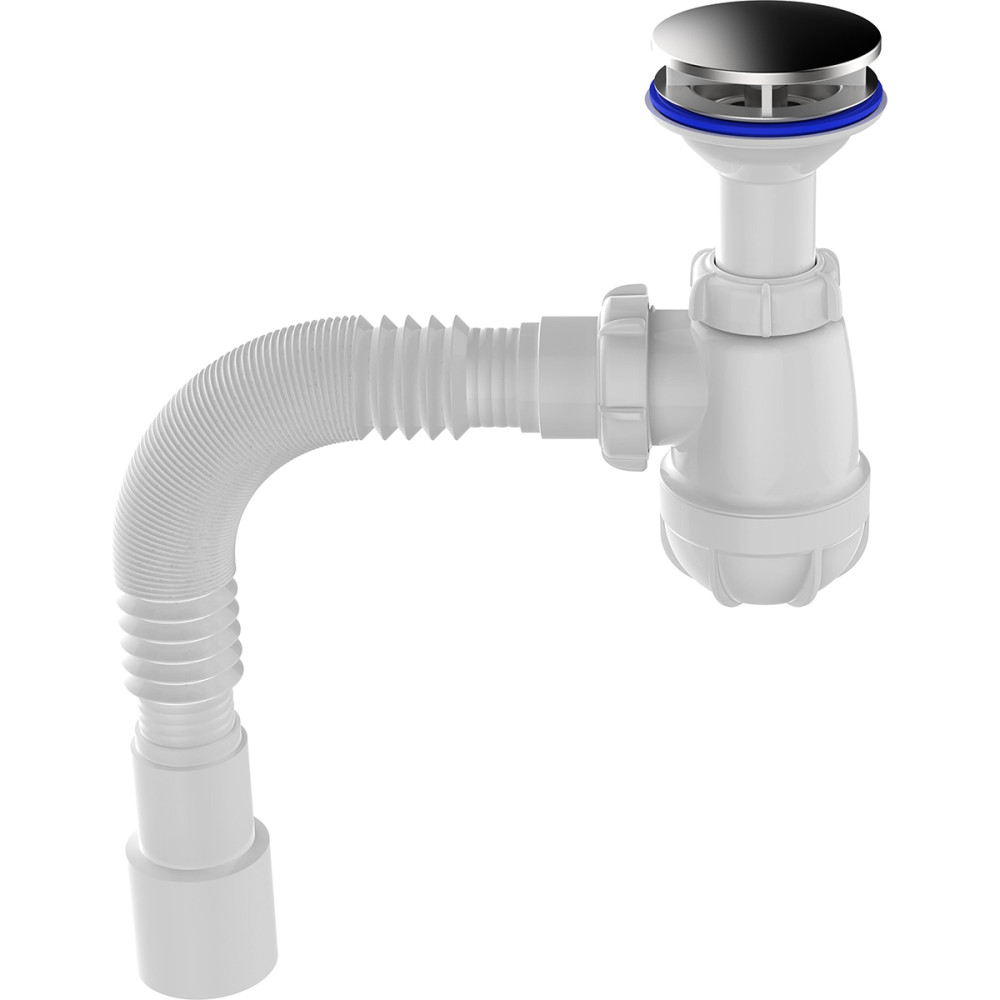 Сифон для умывальника 1 1/2х40 удлин.горл. с декор зеркальн. крышк на реш 40х40/50 Aquant