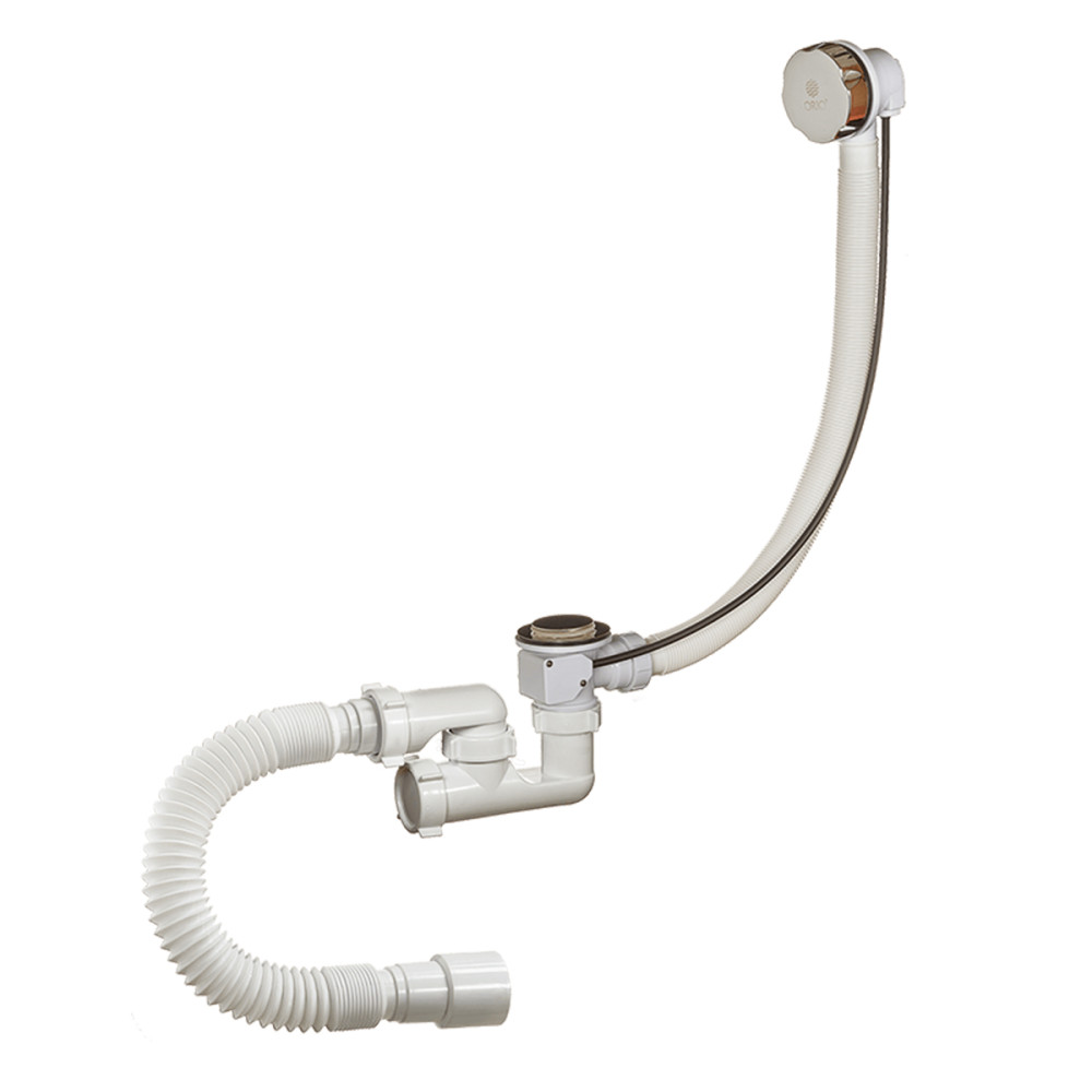 Сифон для ванны 1 1/2 х 40 полуавтомат, регулируемый с переливом и гибкой трубой 40/50 Орио