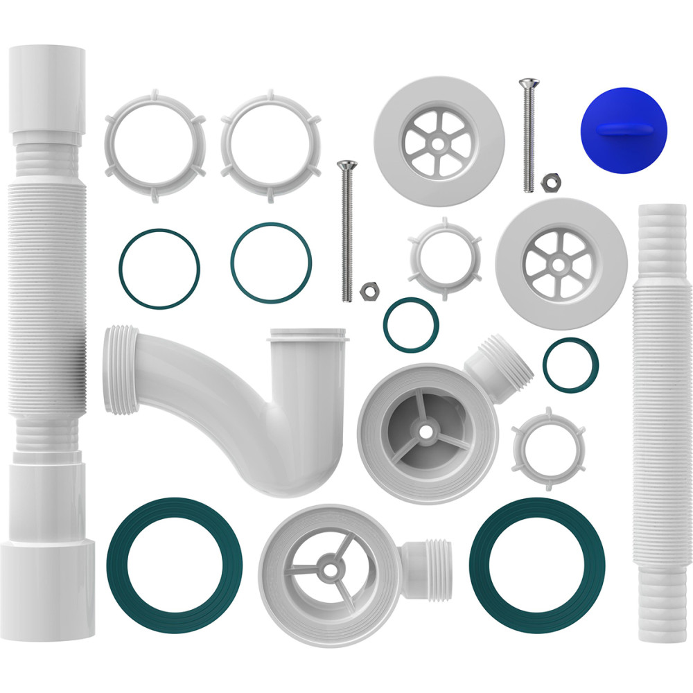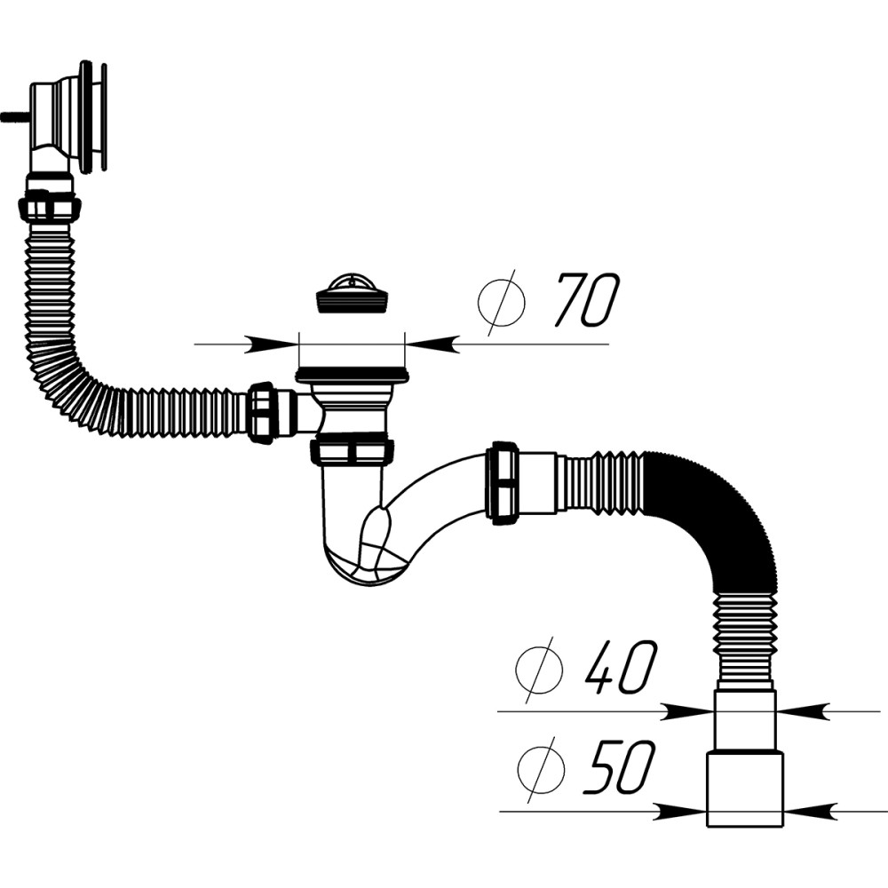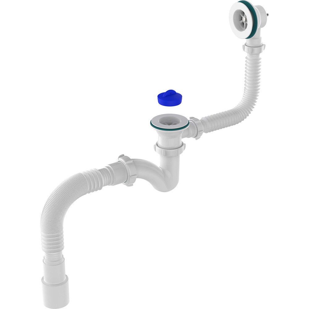 Сифон для ванны 1 1/2х40 узкий прямоточ, выпуск перелив, 2 пласт.реш, 40х40/50 (30) Aquant