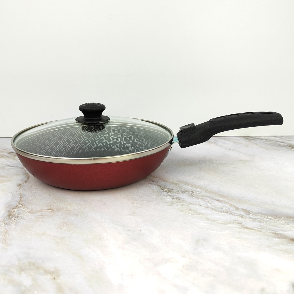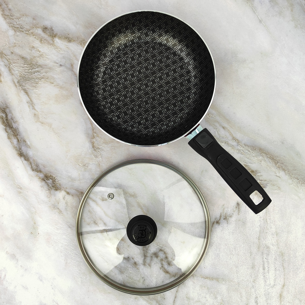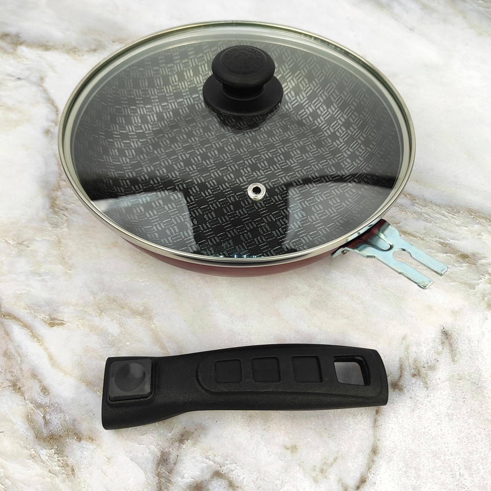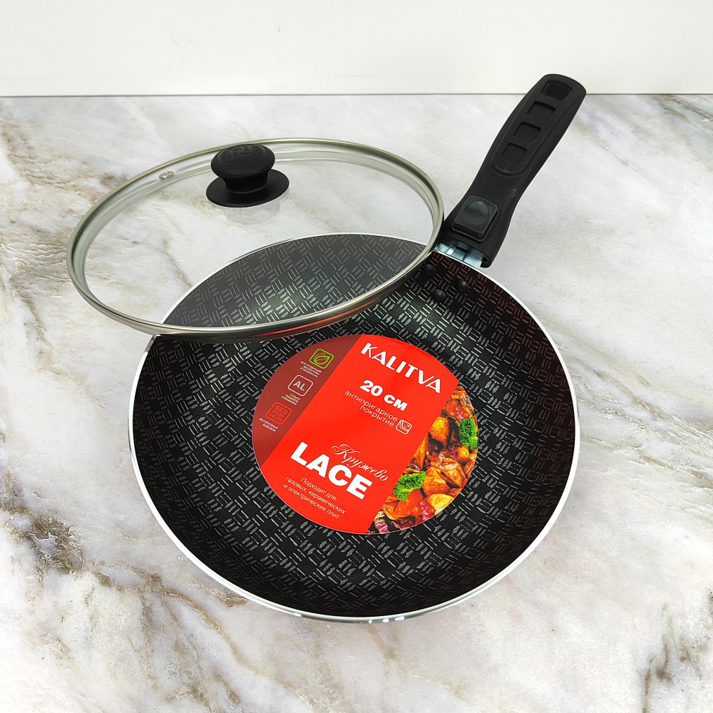 Сковорода алюминиевая 20 см съемная ручка стекл крышка бордо Кружево Калитва