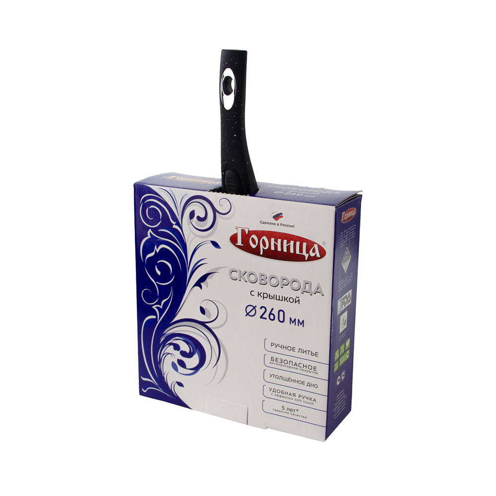 Сковорода алюминиевая 26 см стекл крышка под упак Универсальная Гранит Горница