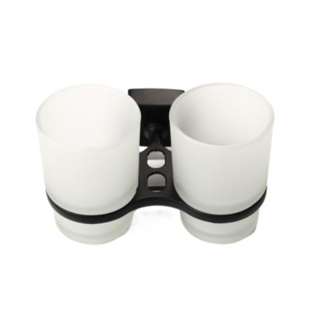 Стакан двойной настенный для зубных щеток 9,5*11*15см матовый черный BZ-KD16 (10) Baizheng