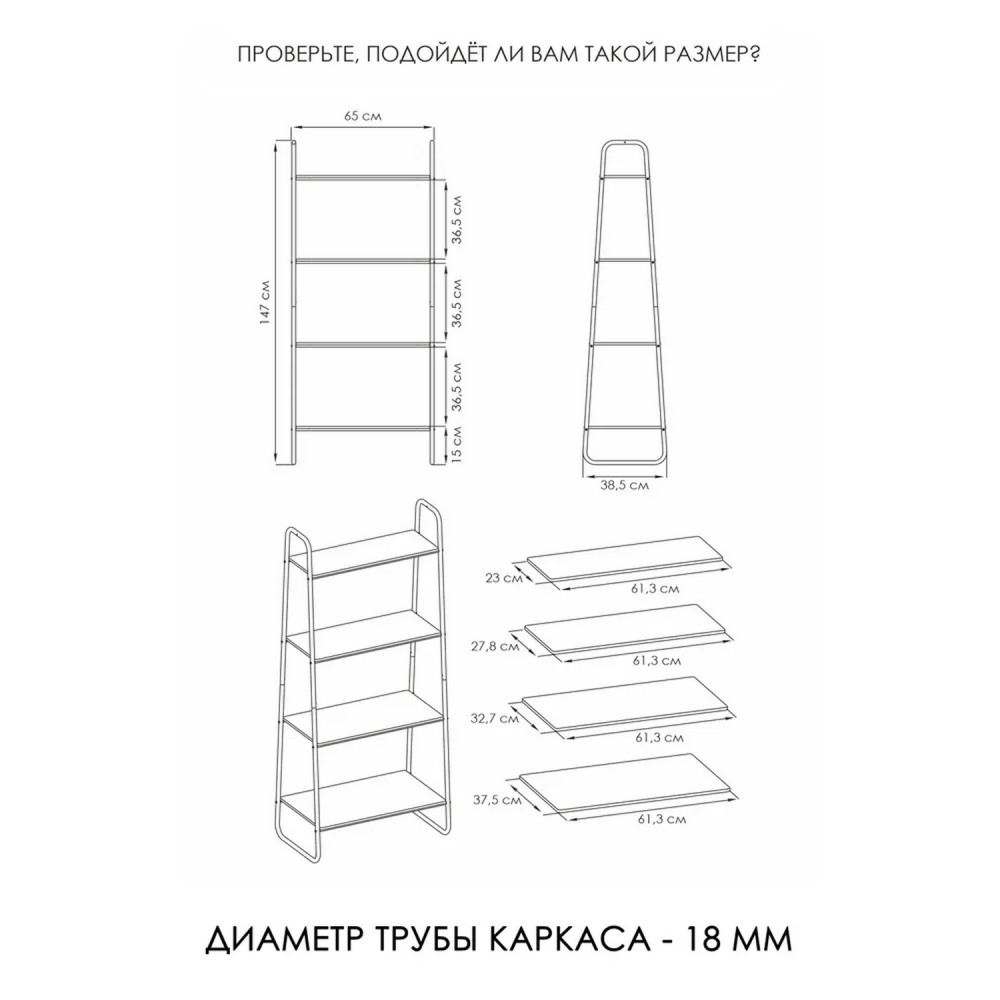 Стеллаж металлический 4-х ярусный 65х38,5х147 см белый Скандинавия 24 ЗМИ