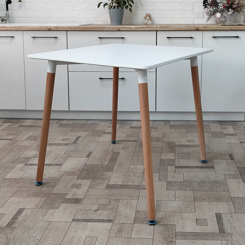 Стол ЛДСП кухонный 80*80*74 см белый квадрат ножки дерево QT04WH Baizheng
