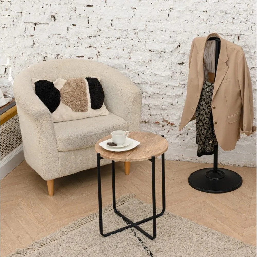 Стол МДФ журнальный 430х430х650 мм ель умбра/черный Nika