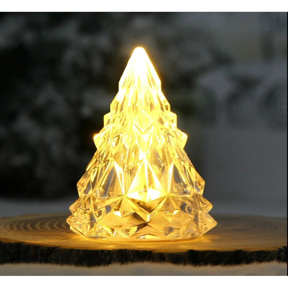 Сувенир новогодний с подсветкой 5*6 см теплый белый Кристальная елочка
