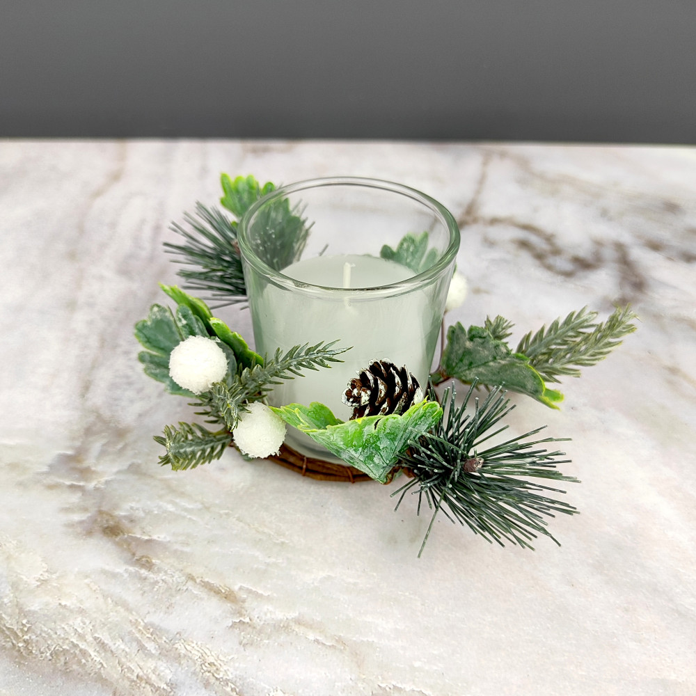 Свеча новогодняя в стакане 6 см декор белый NP-3101 Baizheng