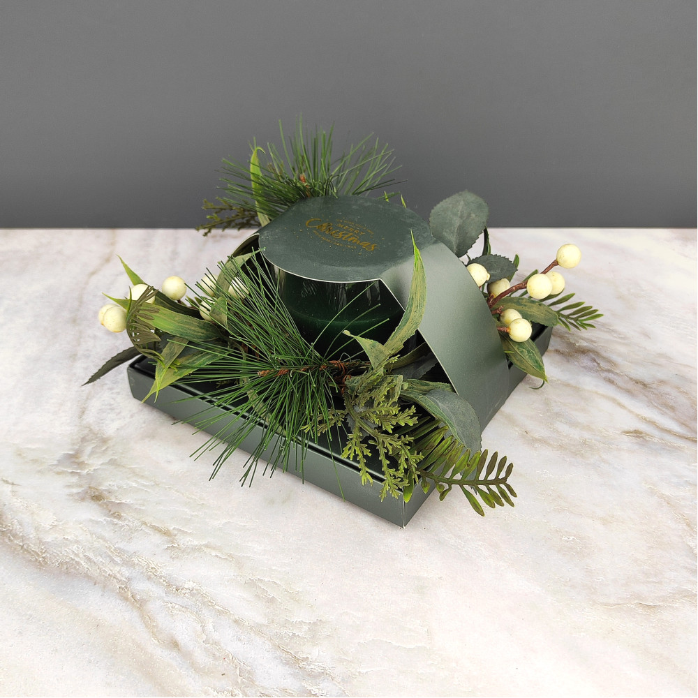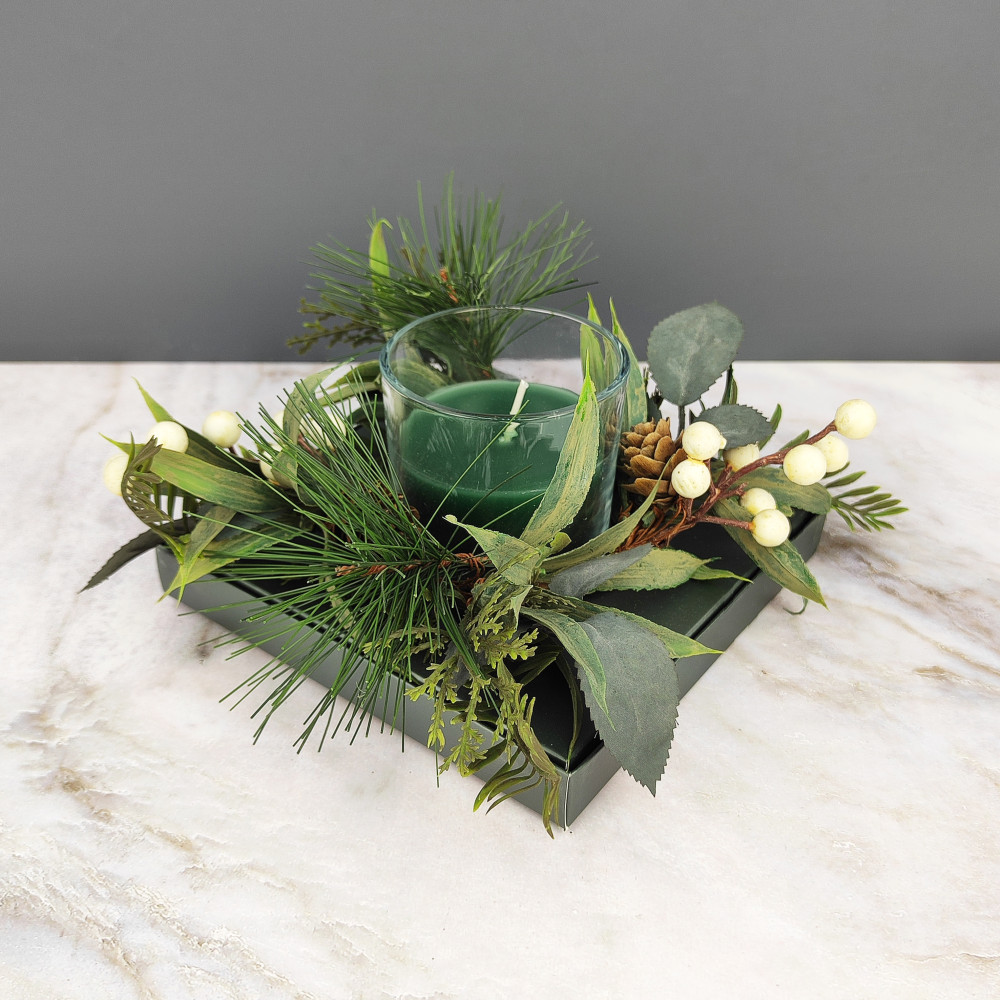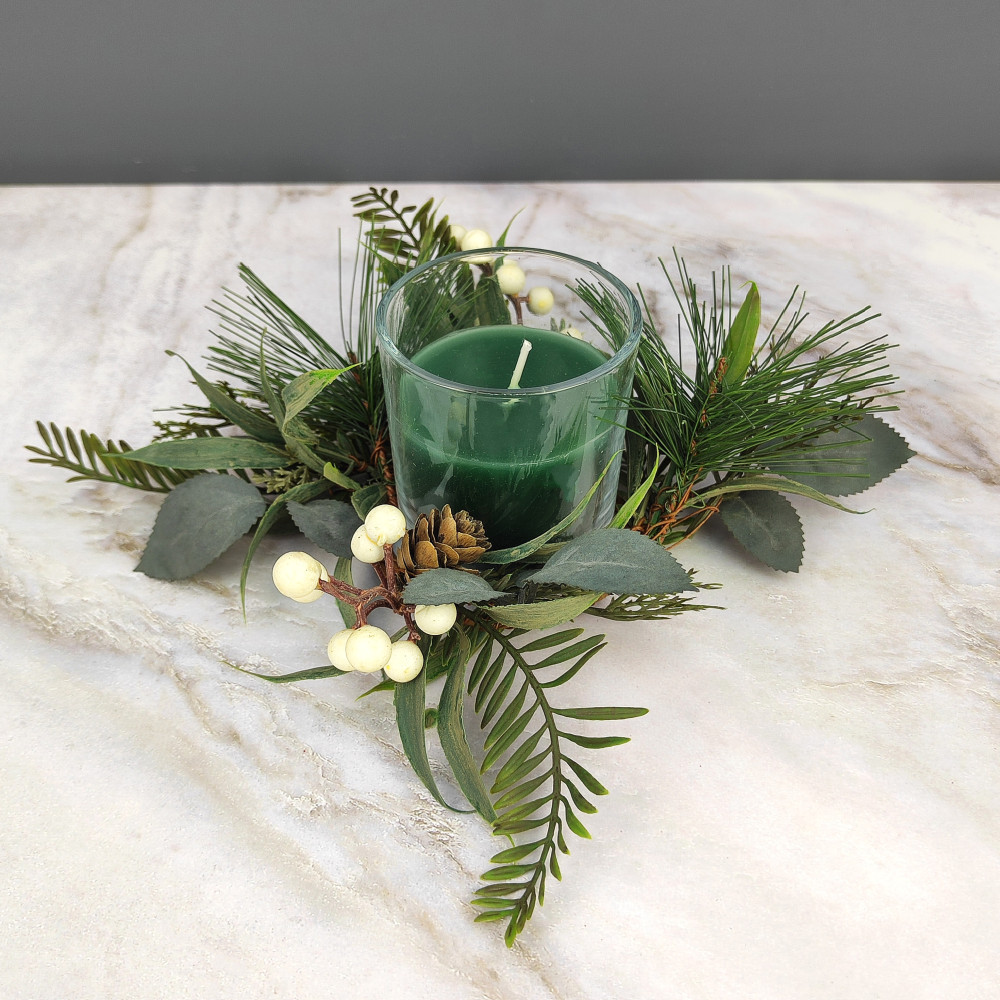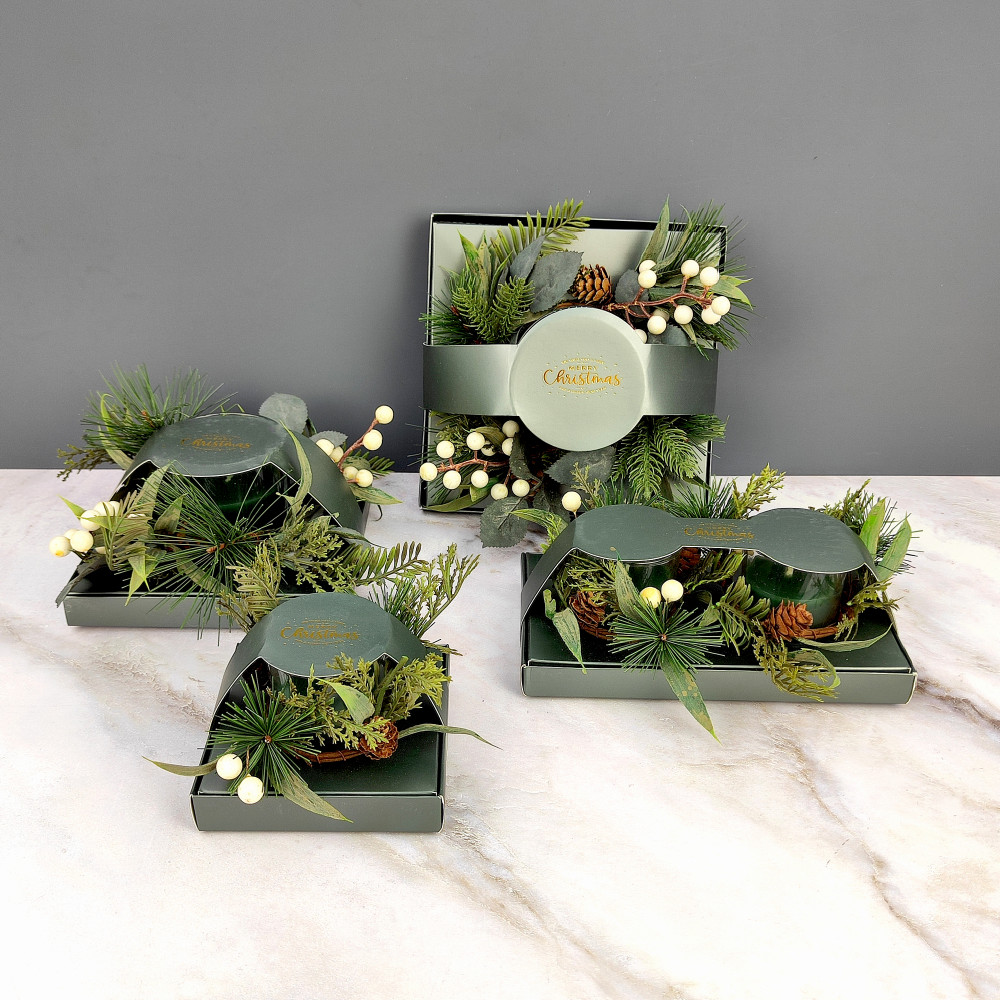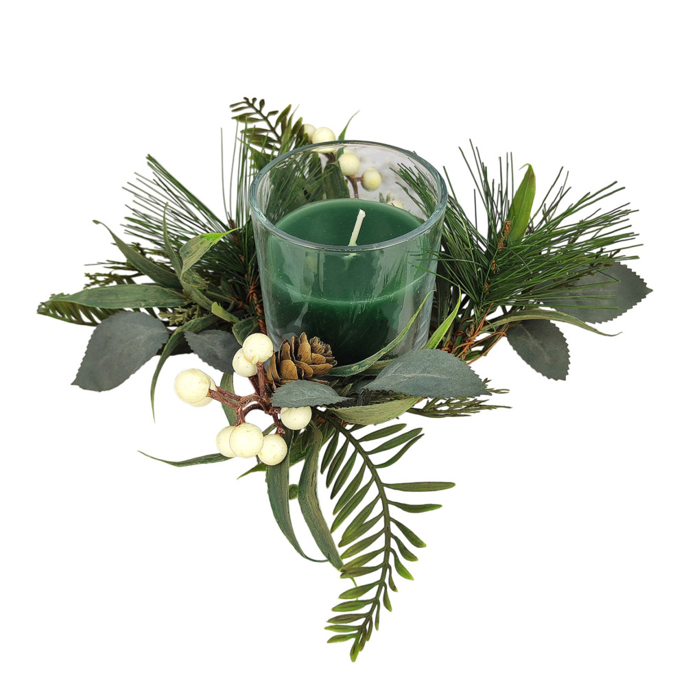 Свеча новогодняя в стакане 8 см декор зеленый NP-3096 Baizheng