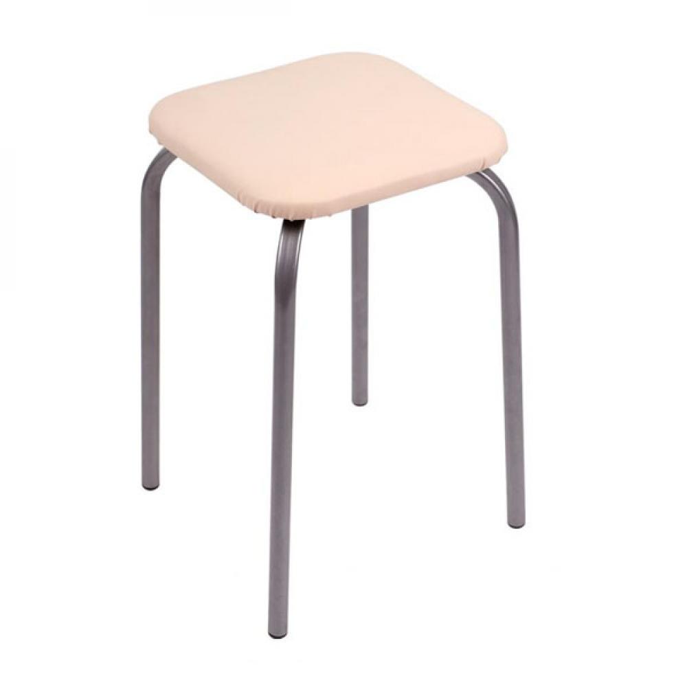 Табурет металлический 320*320*470 мм с мягким сиденьем слоновая кость ЭКОНОМ Nika