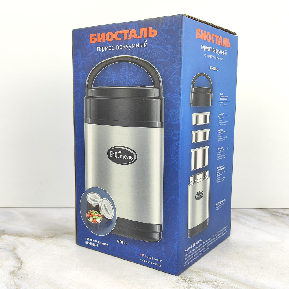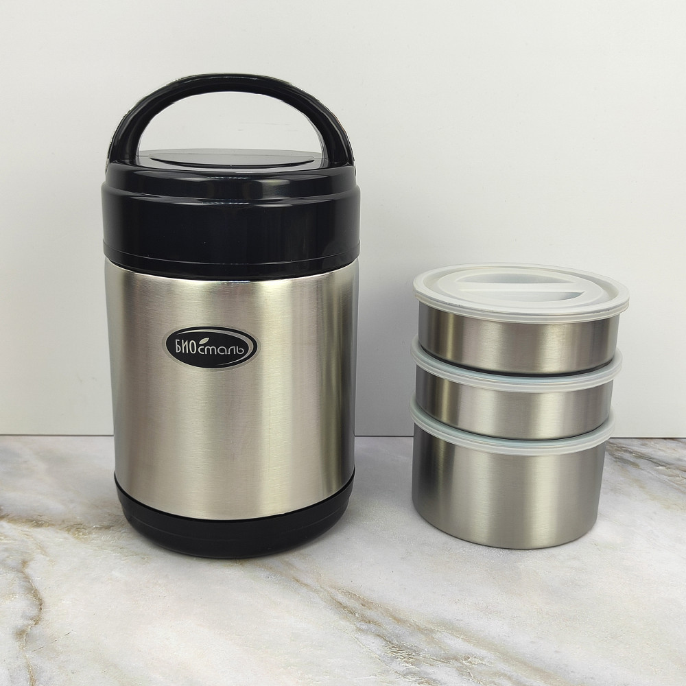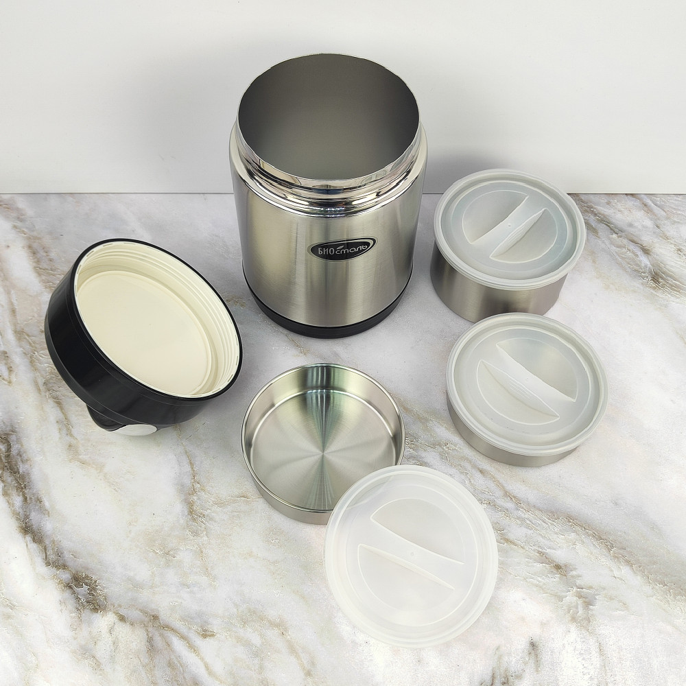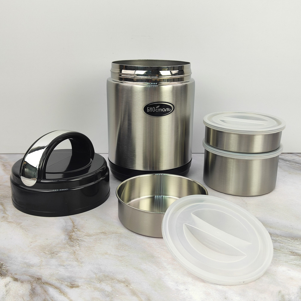 Термос нерж сталь 1,8 л широкое горло 3 контейнера Биосталь