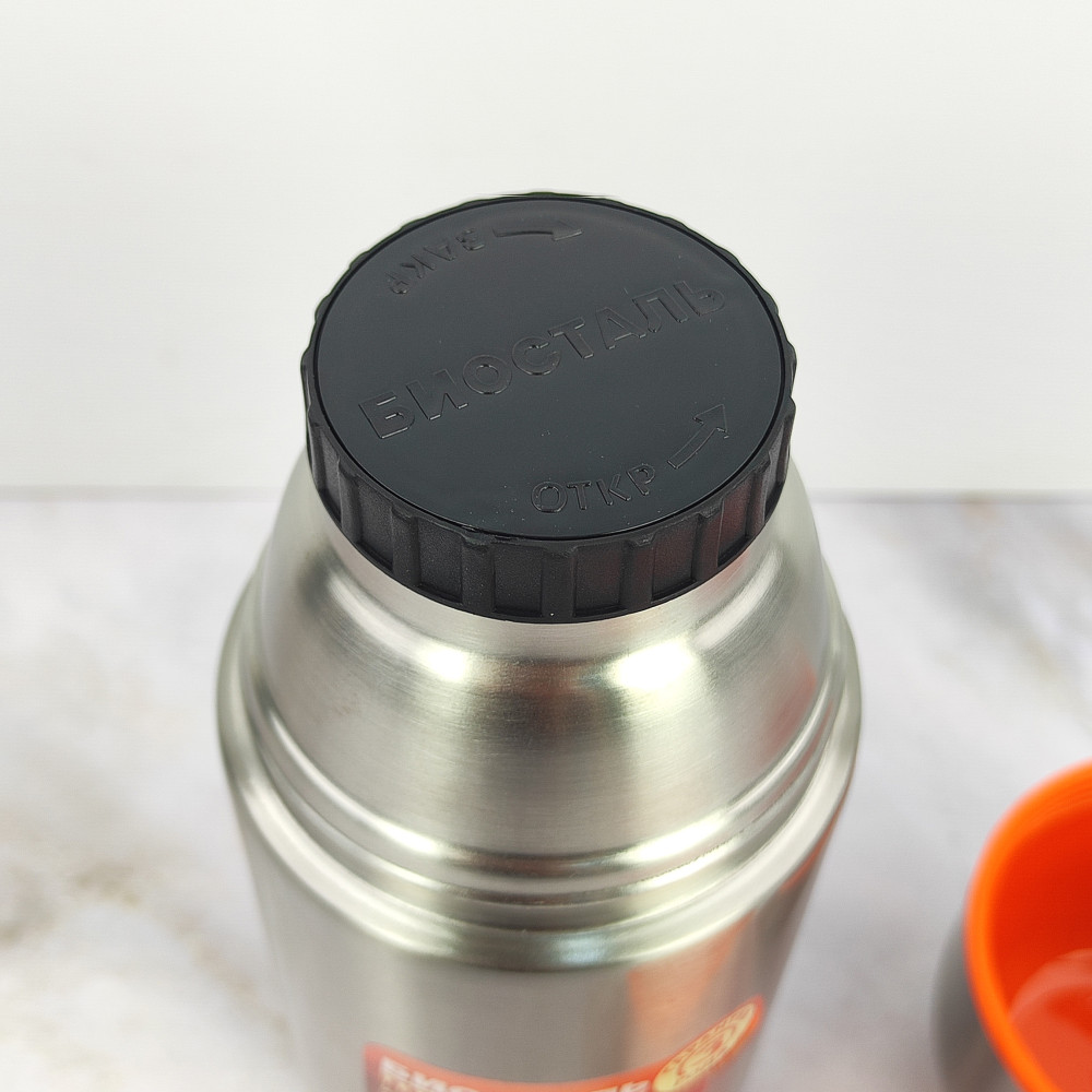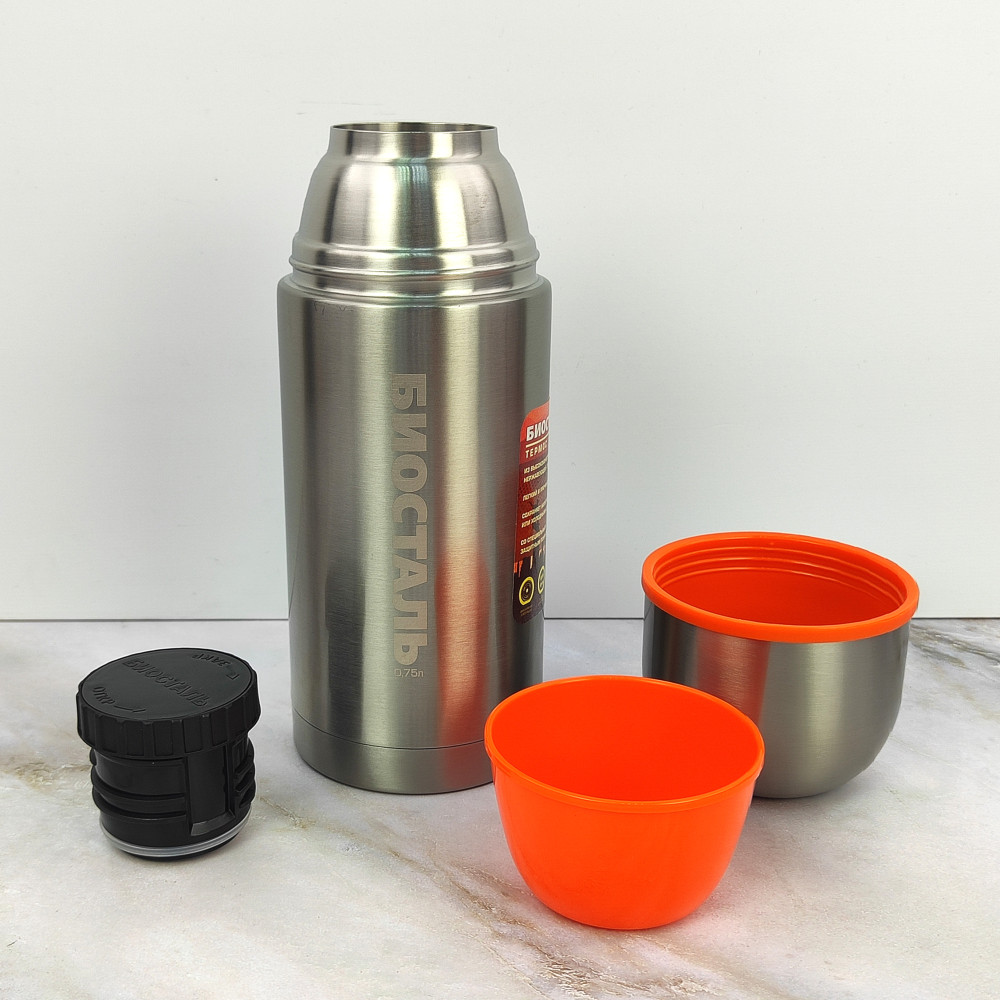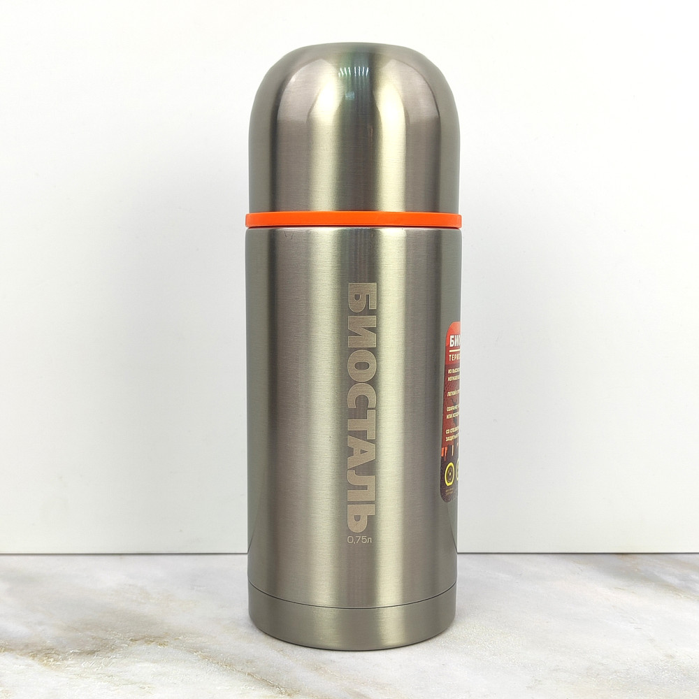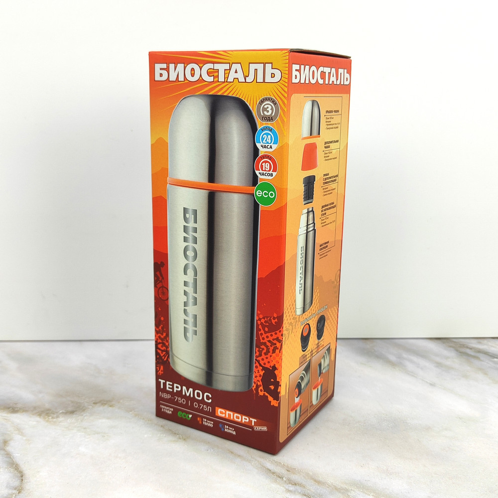 Термос нержавеющая сталь 0,75 л узкое горло 2 чаши без кнопки Спорт Биосталь