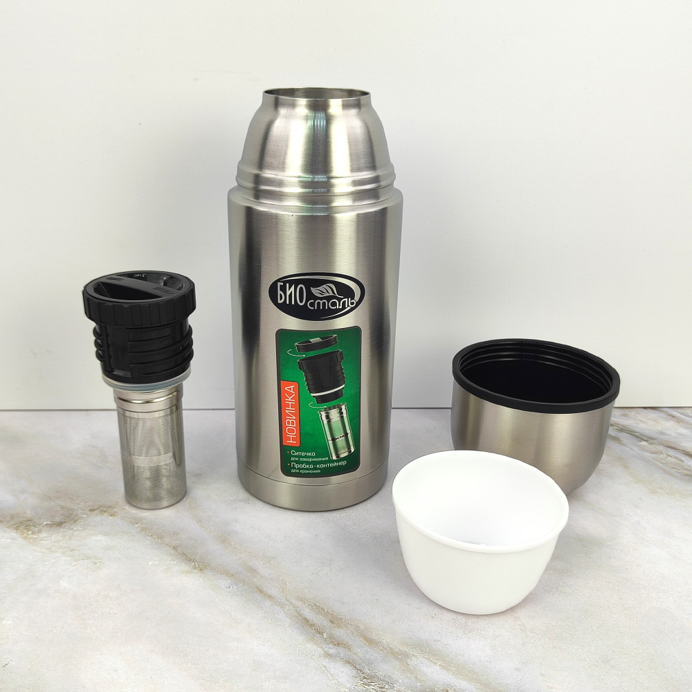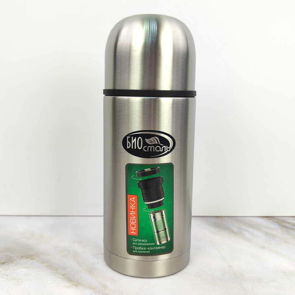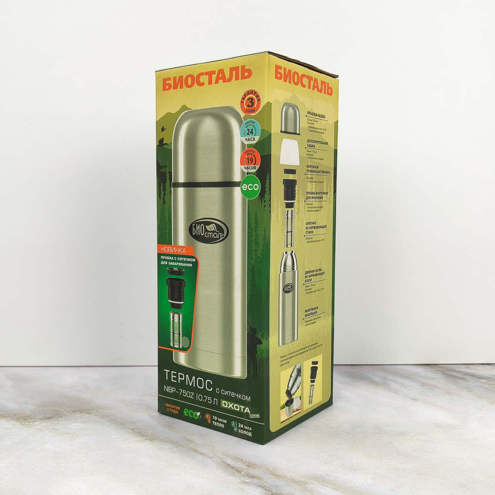 Термос нержавеющая сталь 0,75 л узкое горло пробка сито без кнопки Охота Биосталь