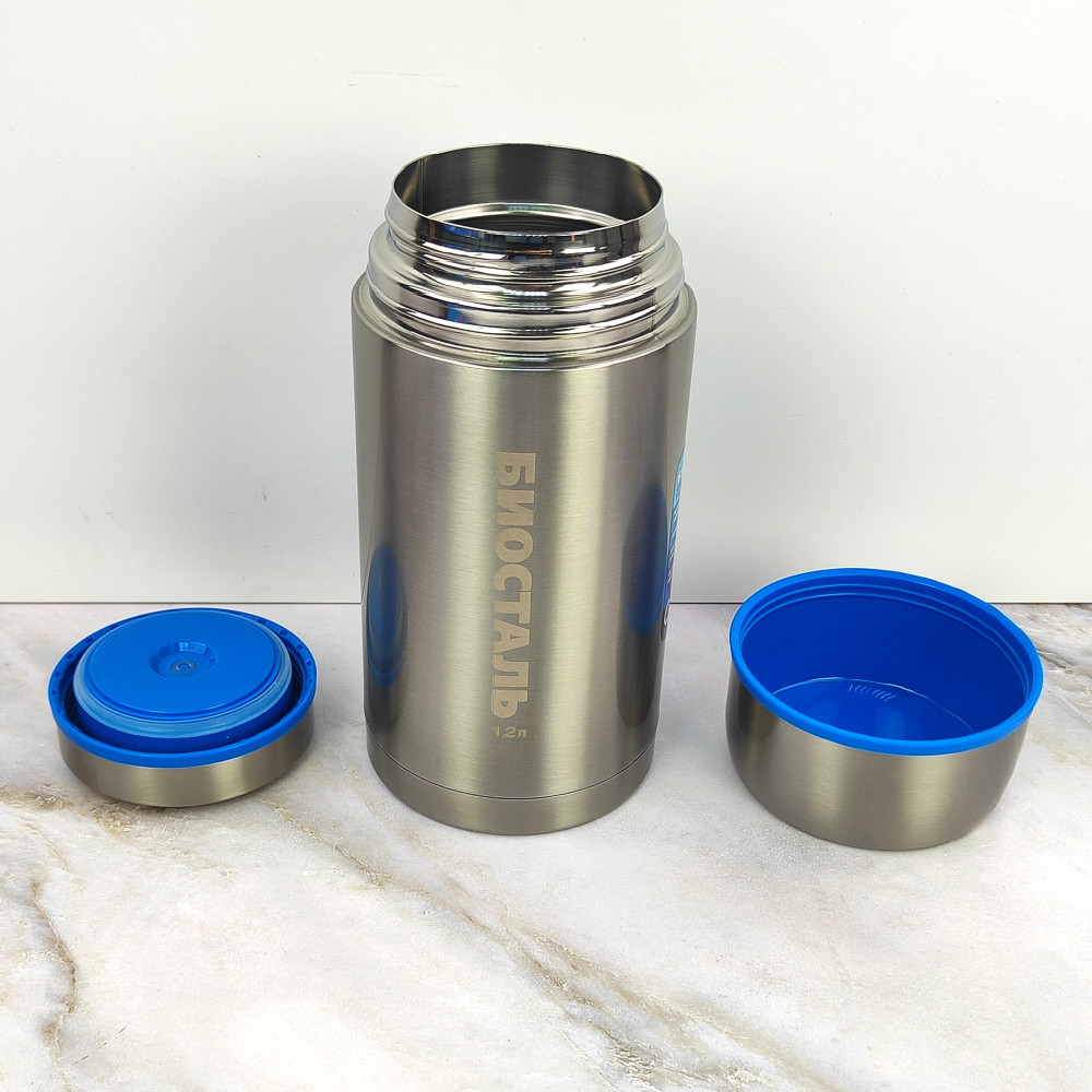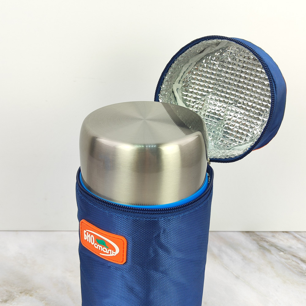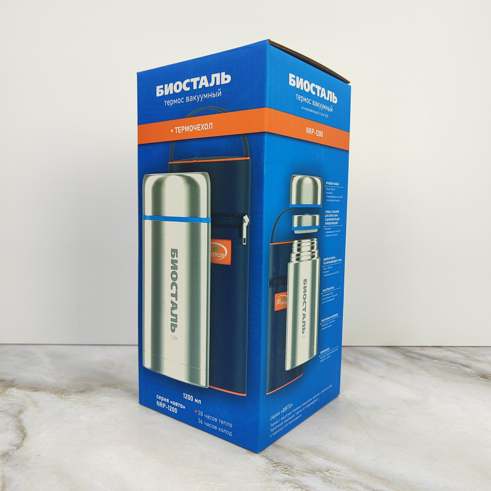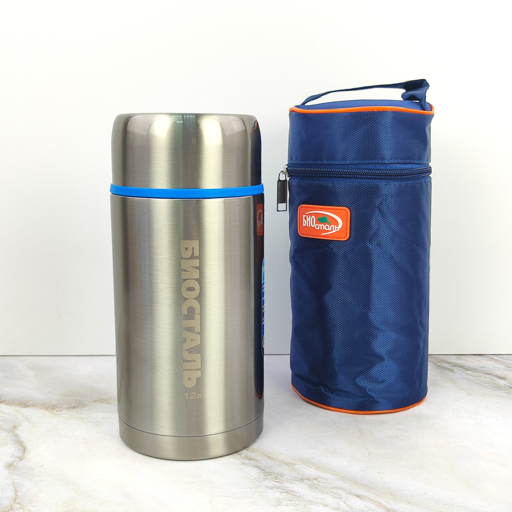 Термос нержавеющая сталь 1,2 л широкое горло термочехол Авто Биосталь