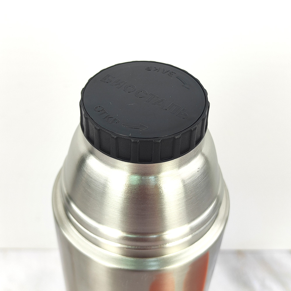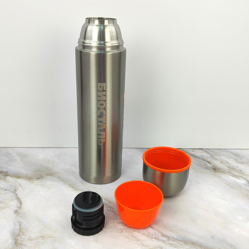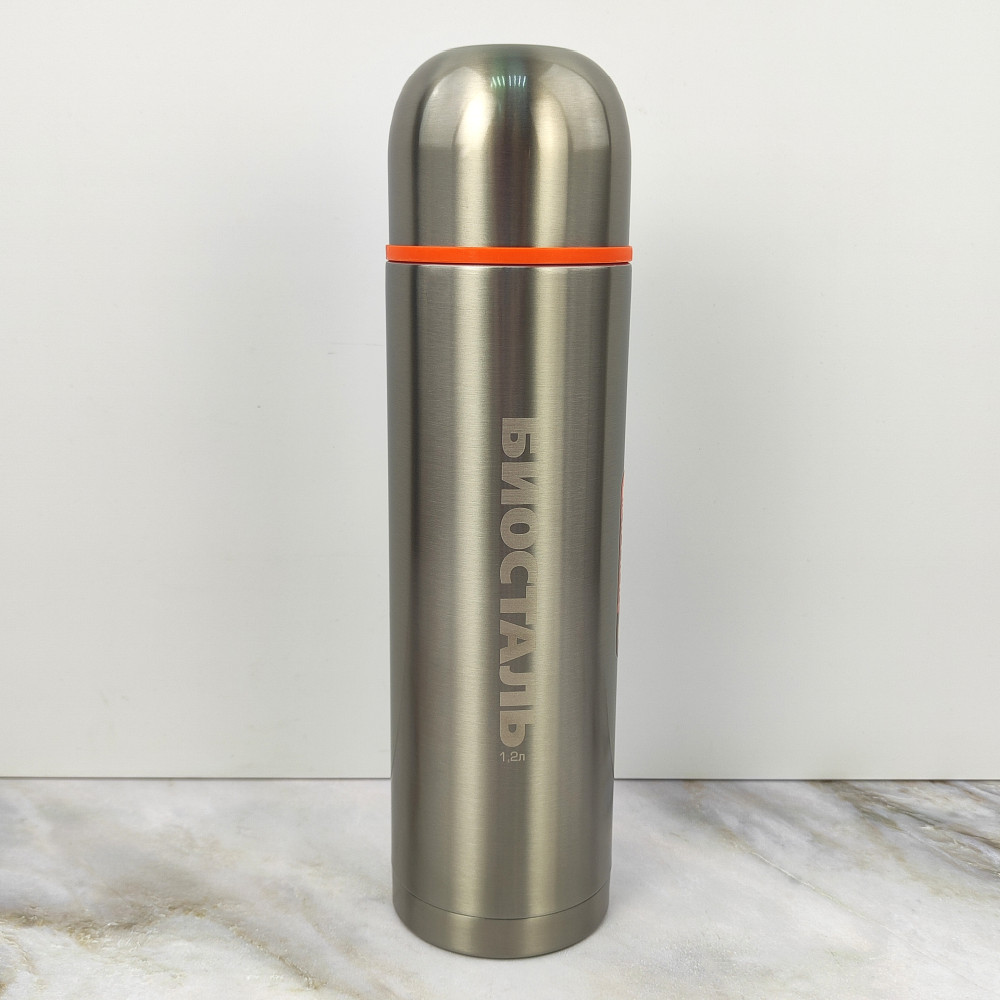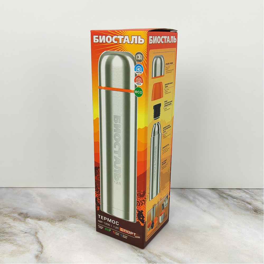 Термос нержавеющая сталь 1,2 л узкое горло 2 чаши без кнопки Спорт Биосталь