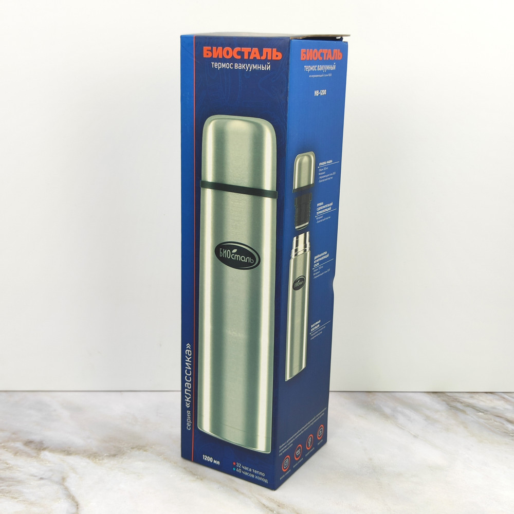 Термос нерж сталь 1,2 л узкое горло без кнопки Классик Биосталь