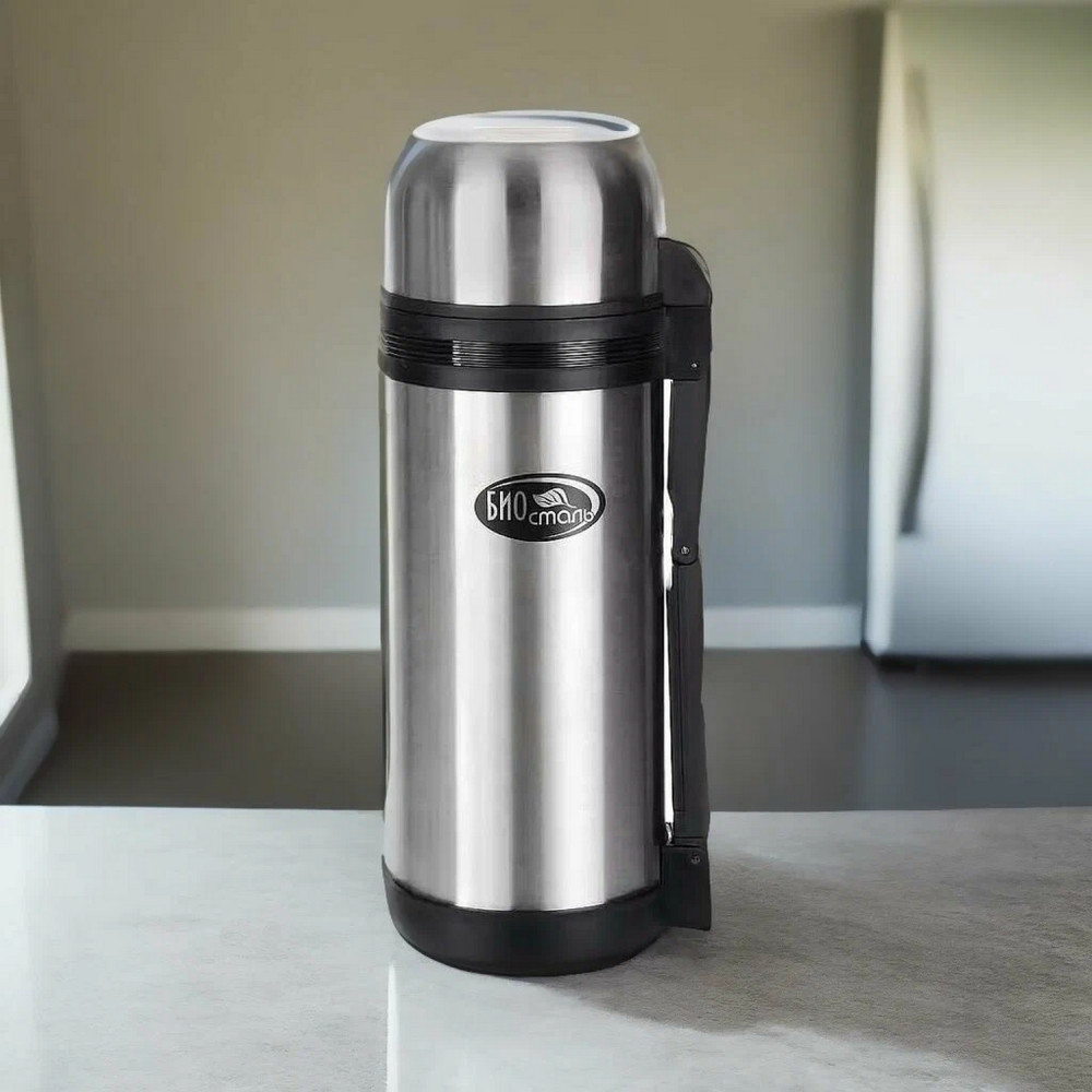 Термос нерж сталь 1,5 л широкое горло 2 чаши ручка Классик Биосталь