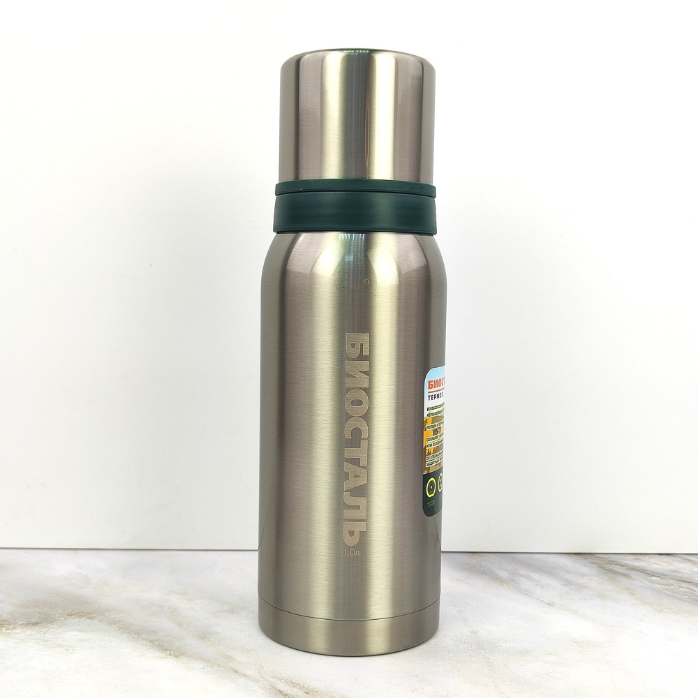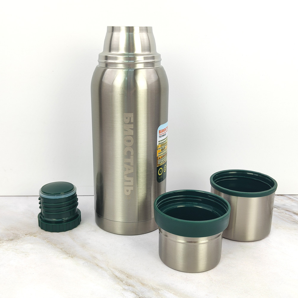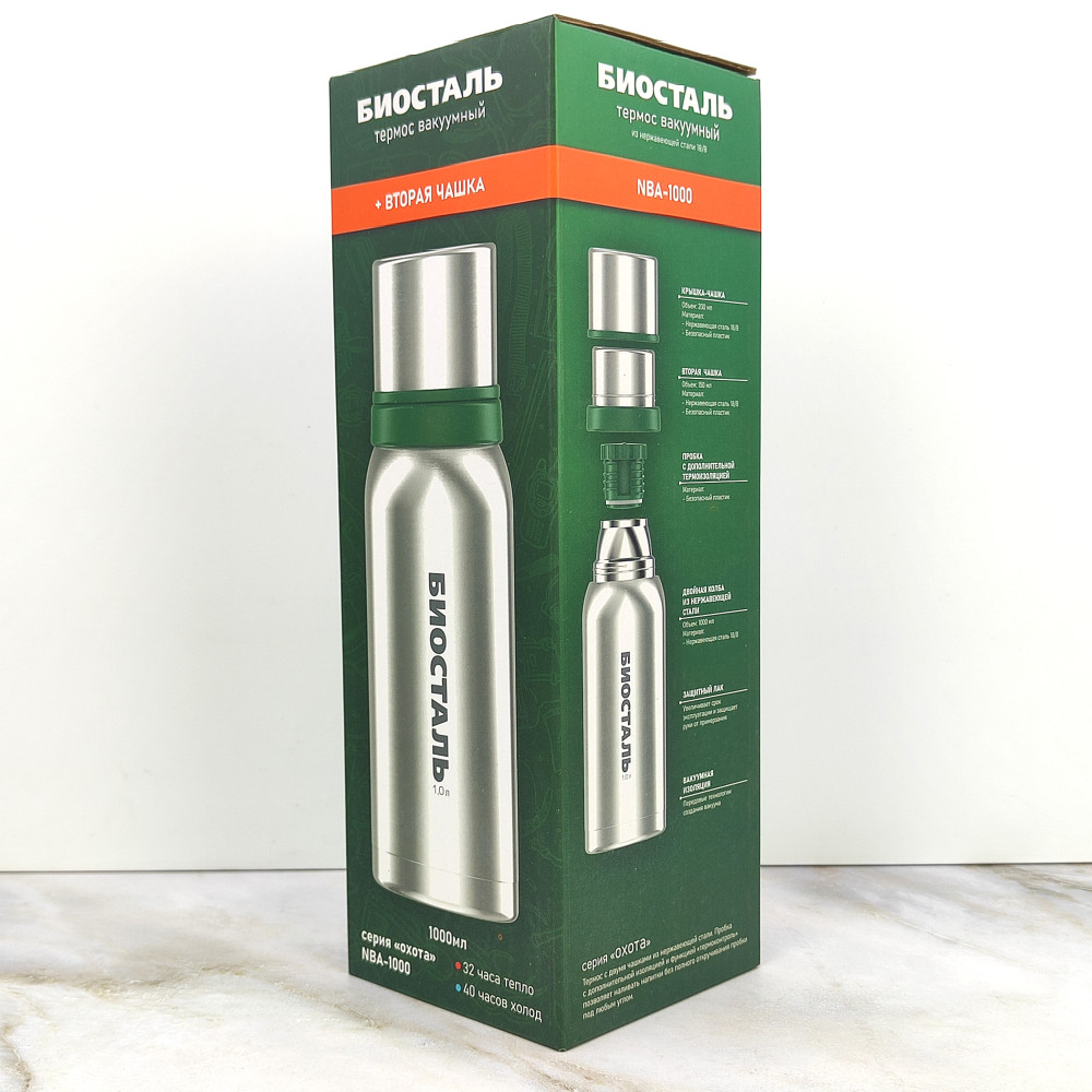 Термос нержавеющая сталь 1 л узкое 2 чаши без кнопки Охота Биосталь
